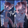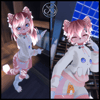 Arm warmers, Hair clips, Leg warmers, Bell choker, Stripes skin decal, Spots skin decal, Top, Eye texture, Short hair, Particles, Menu icons by me (sohvi.art/ Sohvi#9443) in Blender, Substance Painter and Clip studio paint. All images used are clip studio brushes or hand painted.