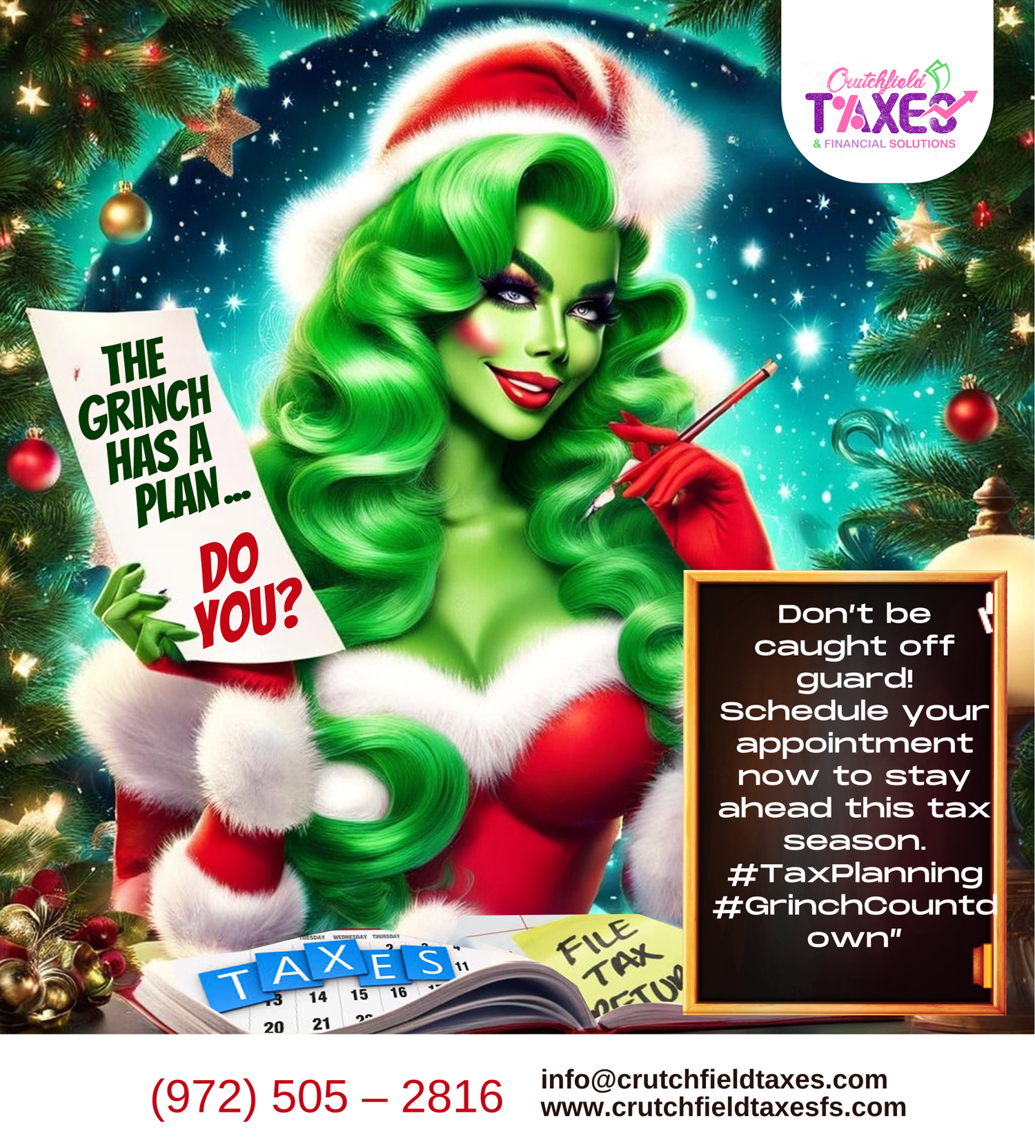 Make tax season fun with ‘The Grinch Has a Plan’ Flyer Template – a ready-to-use digital design to showcase services with humor and festive flair.