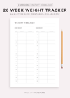 This is a printable 26 week weight tracker — just download, print, and start using it right away.