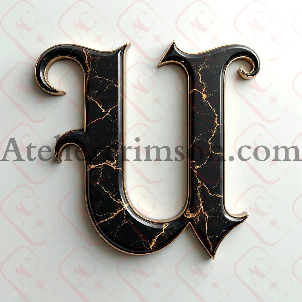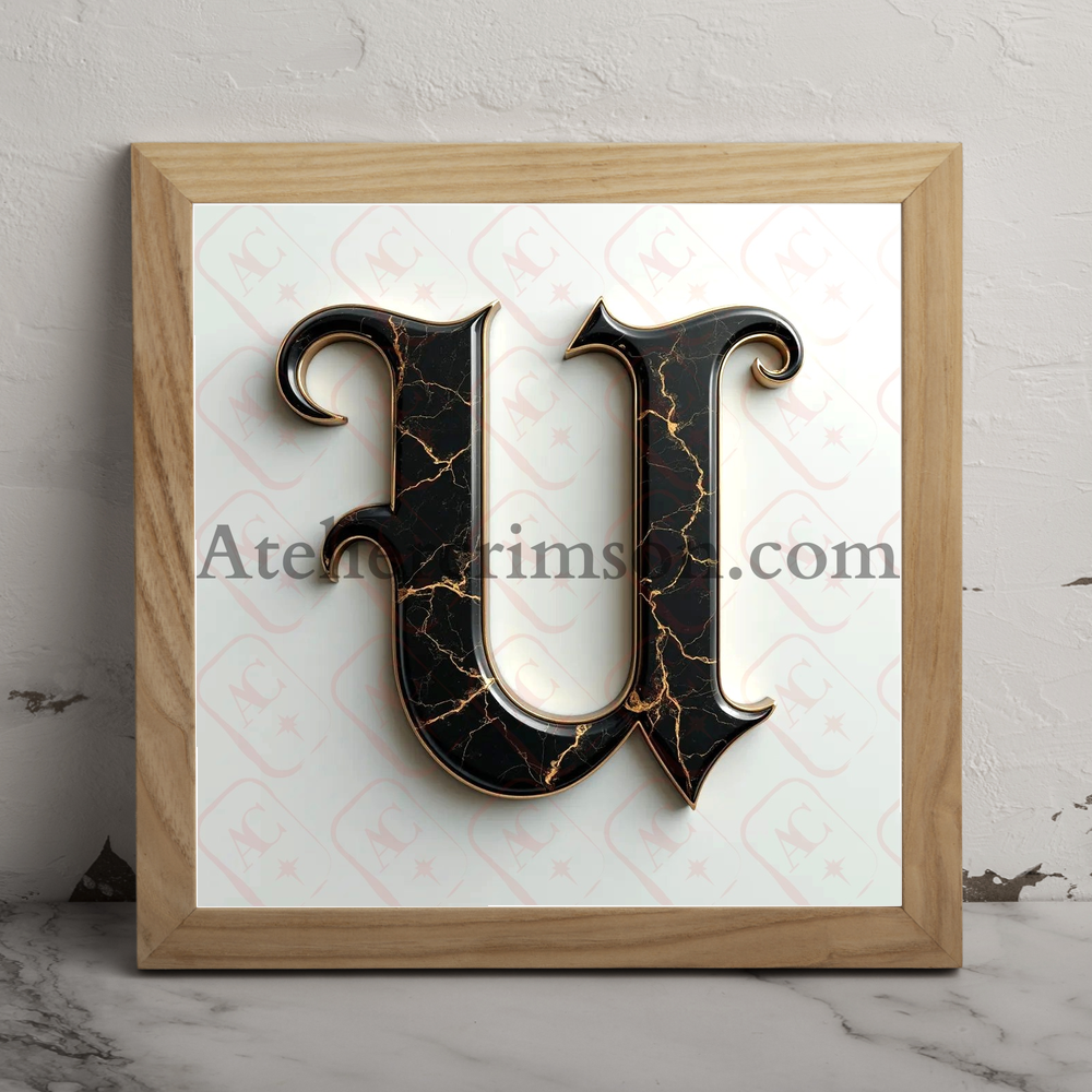 The letter U luxury black marble