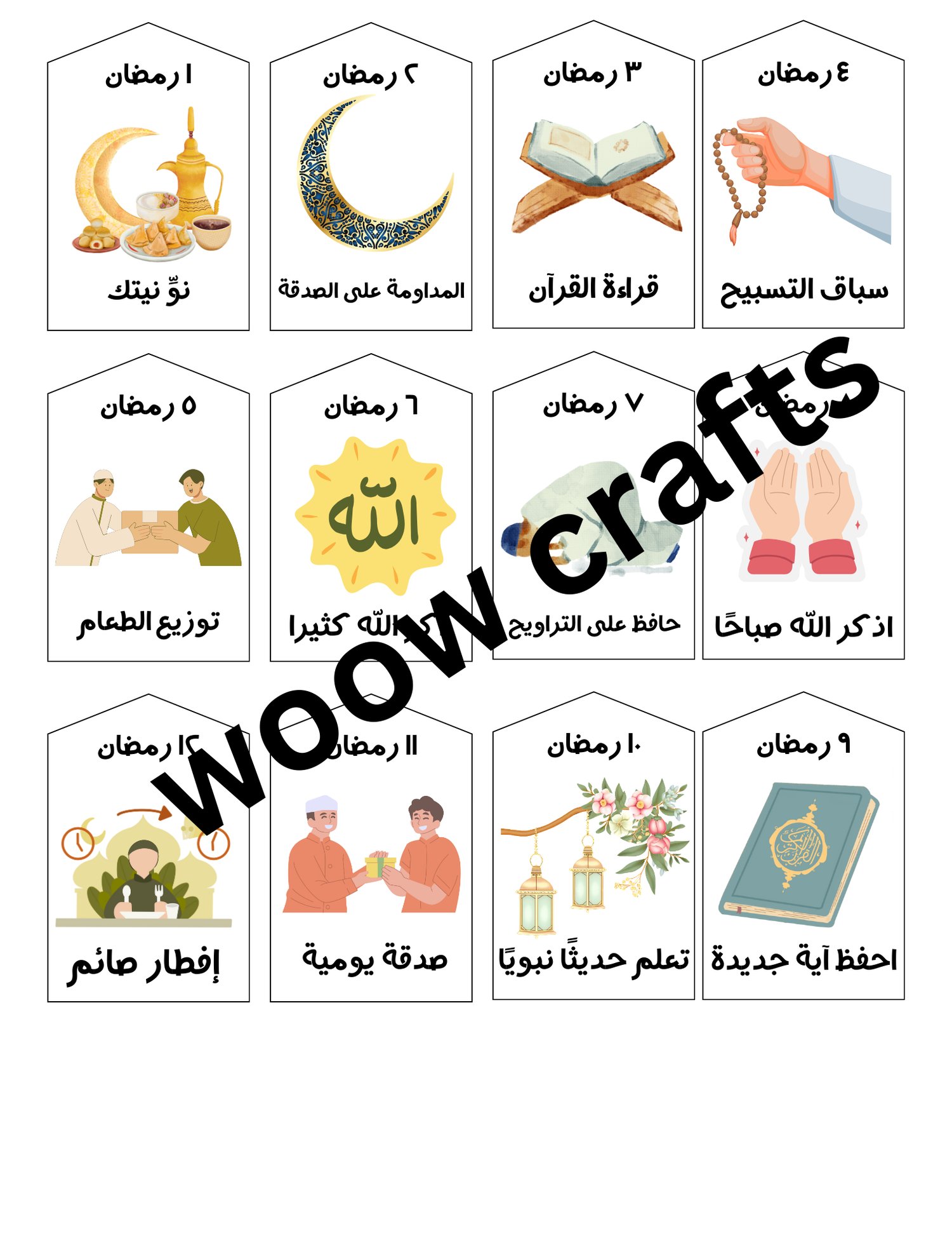 ٣٠ كرت تعبأءه الرزنامة لشهر رمضان