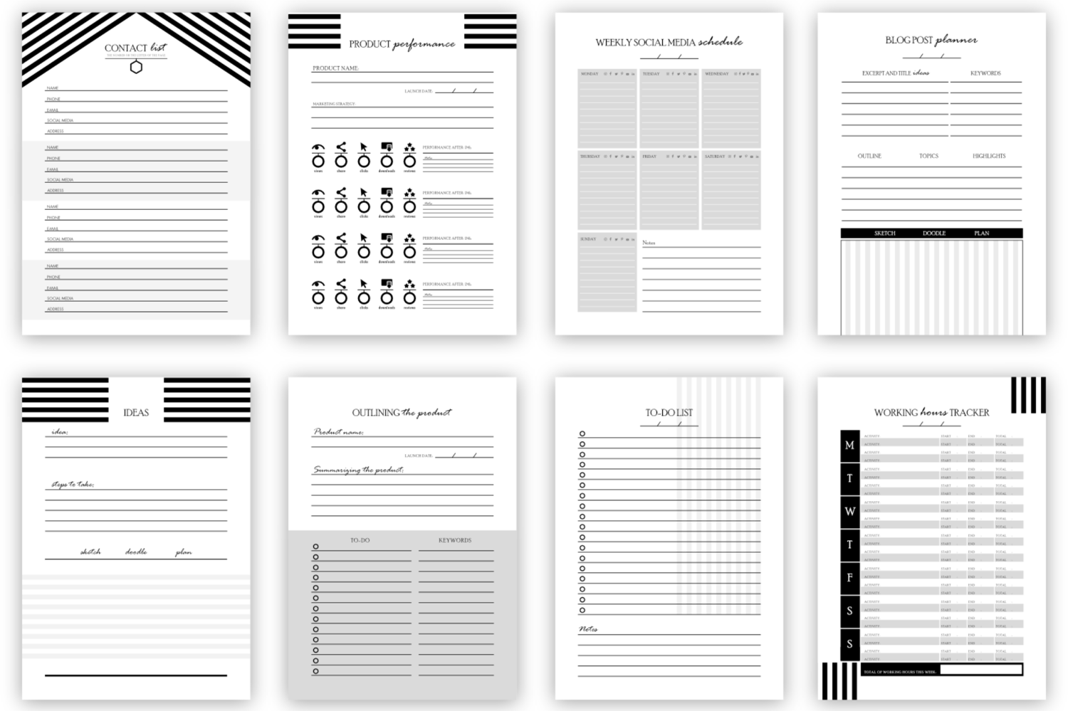 Presenting, the Black and White edition of the Working Online planner. This is a versatile planner with a modern design to help you plan your work. Have this planner by hand and be more productive than ever.