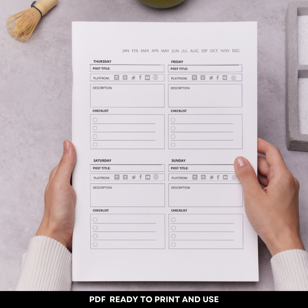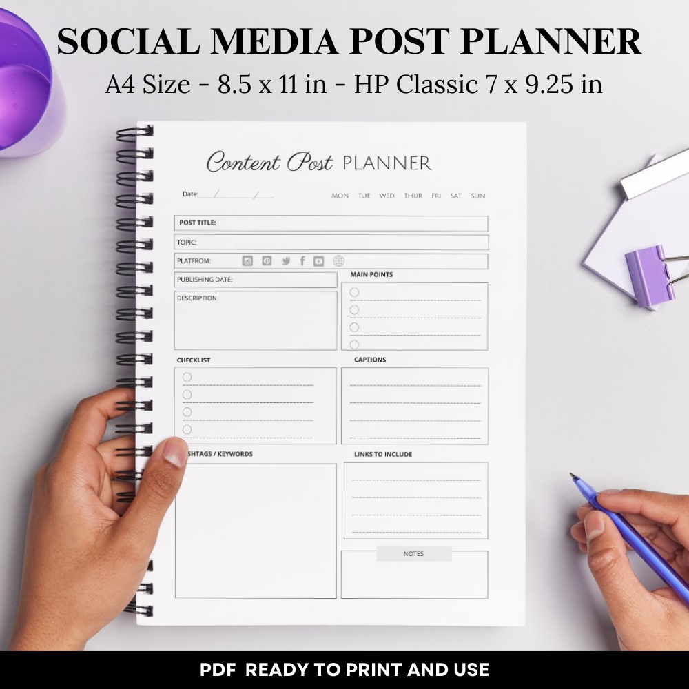 - Content Post Planner Templates: Organize and schedule posts with purpose, keeping your messaging consistent. Plan weeks or months in advance, ensuring each post aligns with your goals and brand.