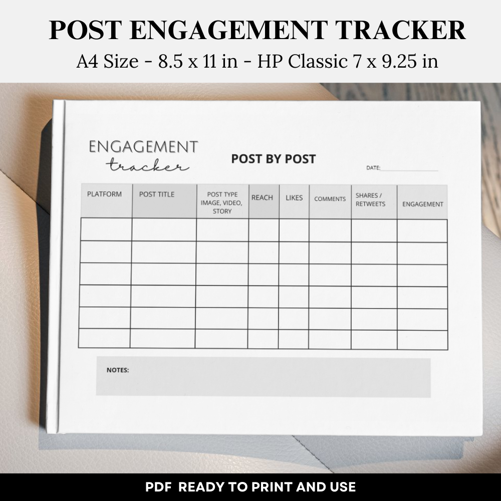 - Engagement Tracker Templates; Monitor likes, comments, shares and follower growth for each platform in one easy-to-use layout. Track engagement metrics to spot trends and enhance your content strategy.