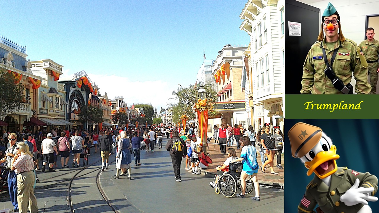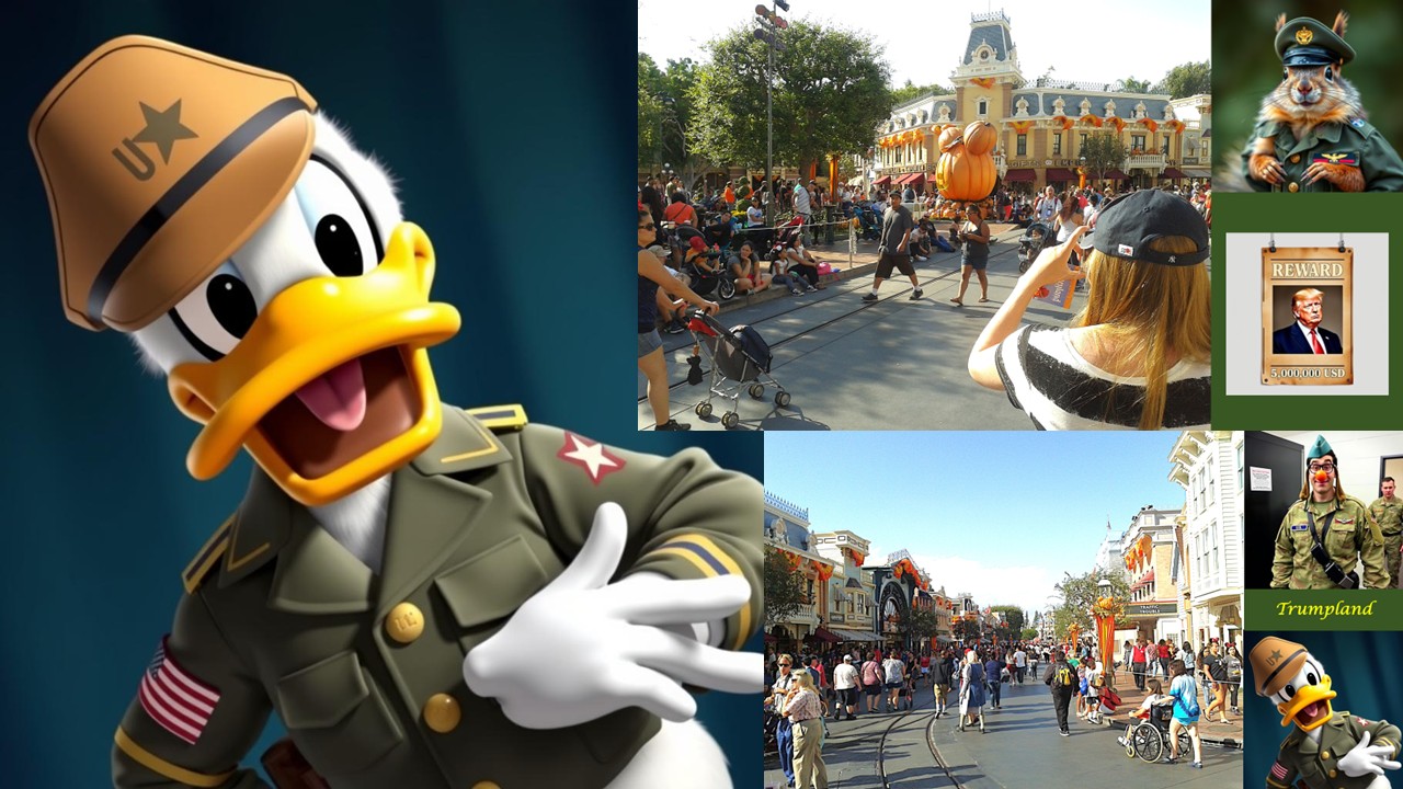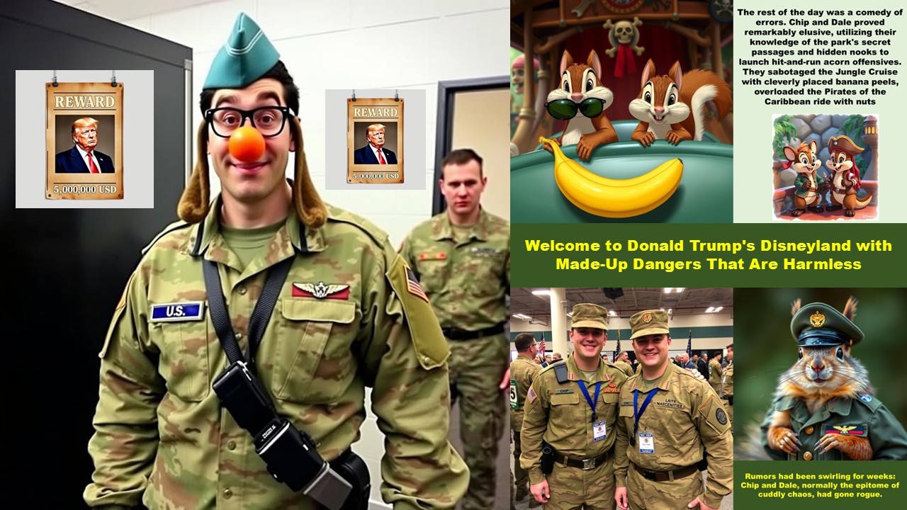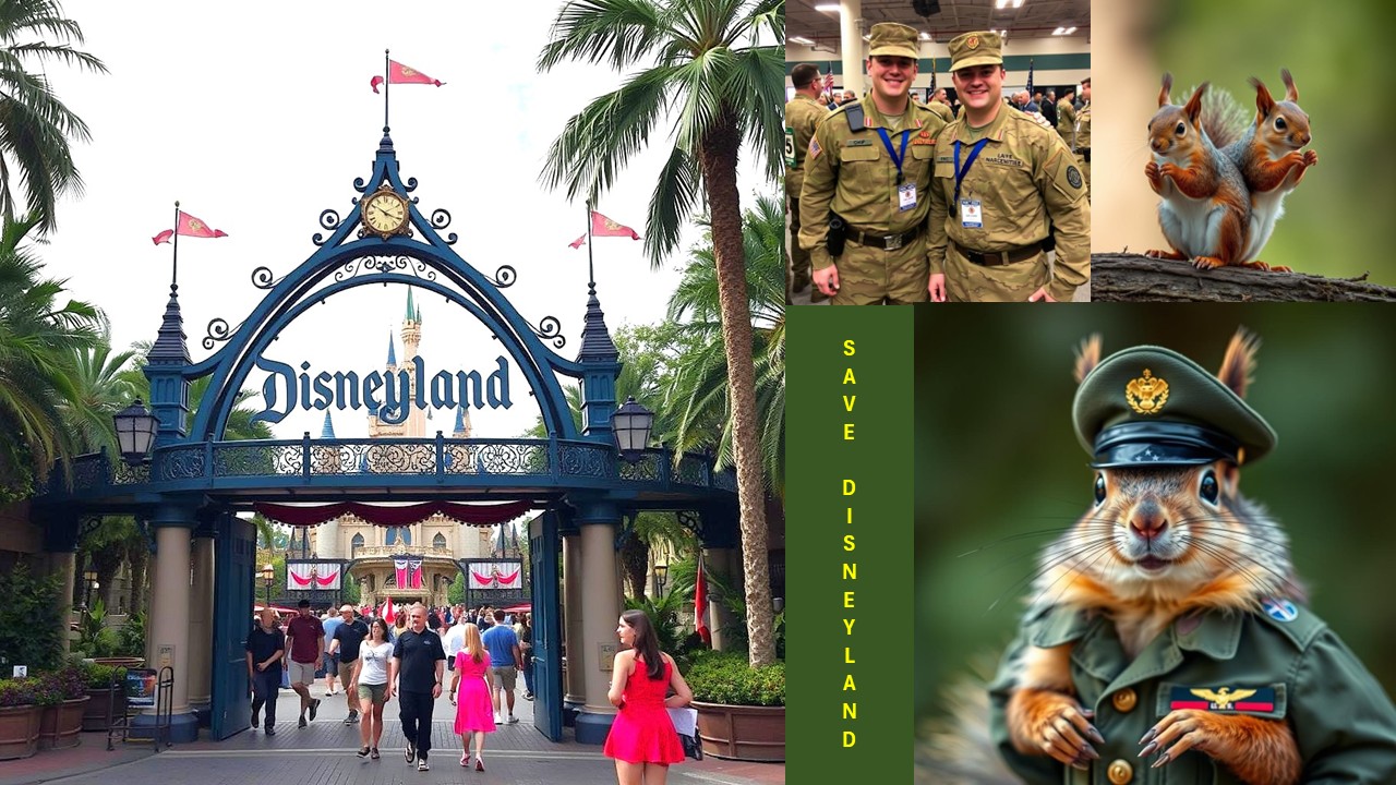 Sergeant Miller, a veteran of two tours in the Middle East, stood nervously by the entrance to Adventureland, his M16 nervously slung over his shoulder. Beside him, Private Johnson adjusted his helmet, his eyes wide with a mixture of excitement and bewilderment. "So, Sergeant," he whispered. "We're... protecting Donald Duck from chipmunks?“