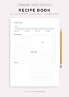 Recipe Book Template Printable, Blank Recipe Page, Cook Book Journal, Recipe Planner