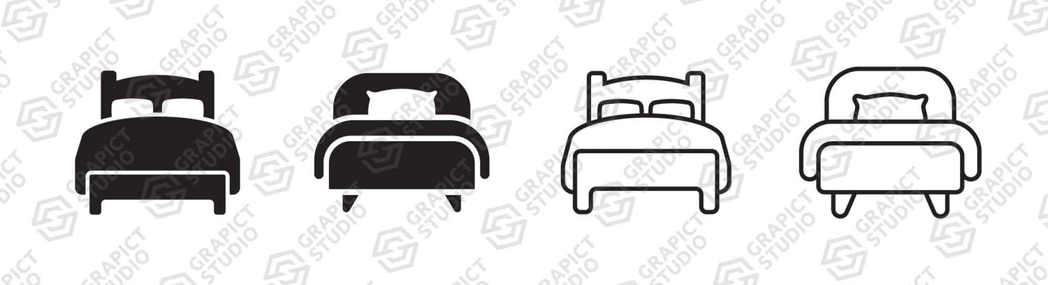 bed icon symbol sleep night hotel motel vector graphic illustration isolated and flat. Bed icon set of 4, design element suitable for websites, print design or app
