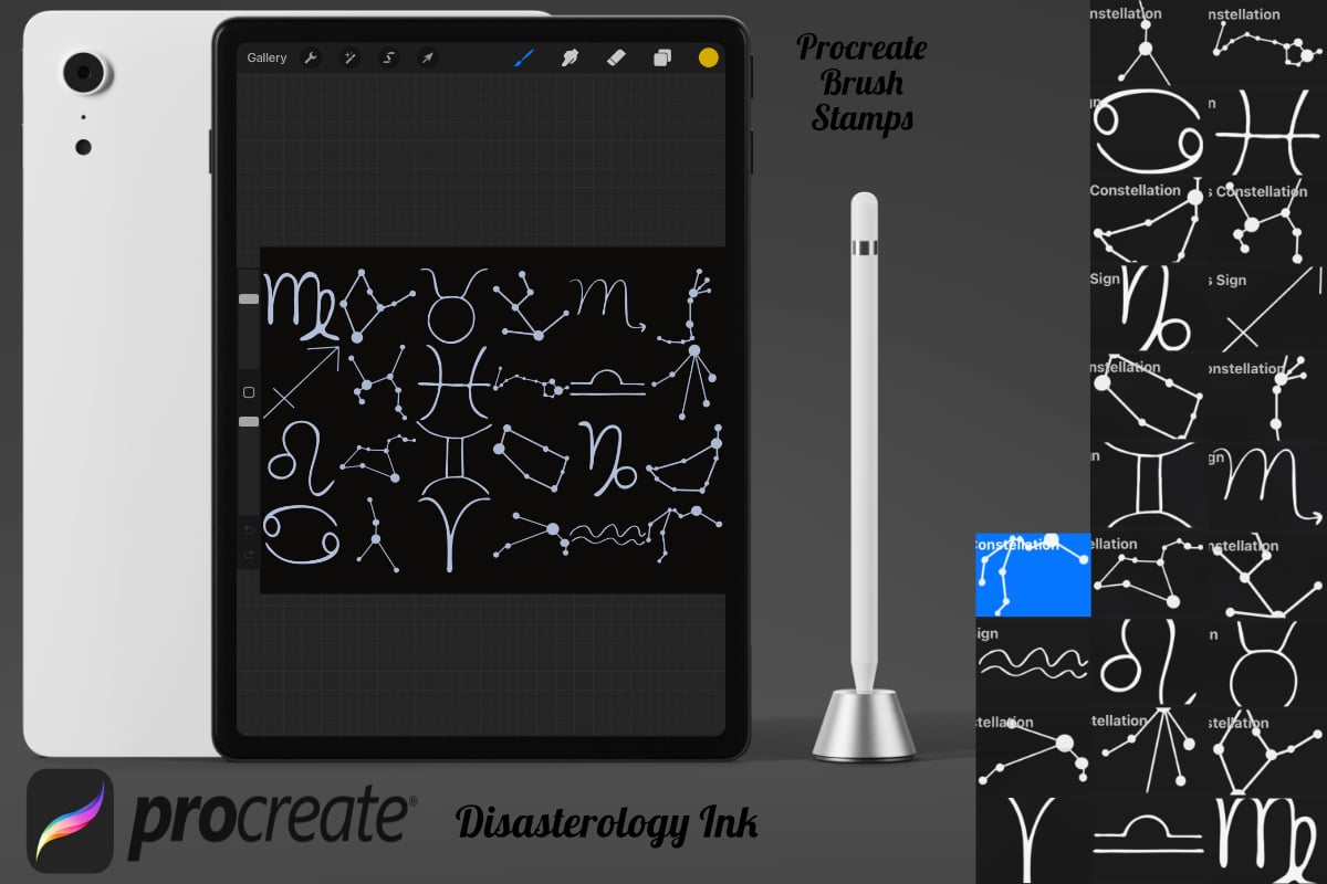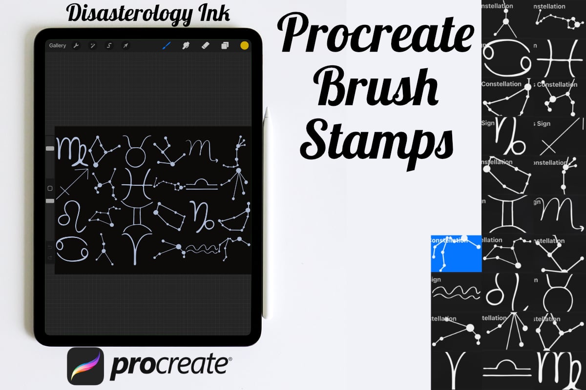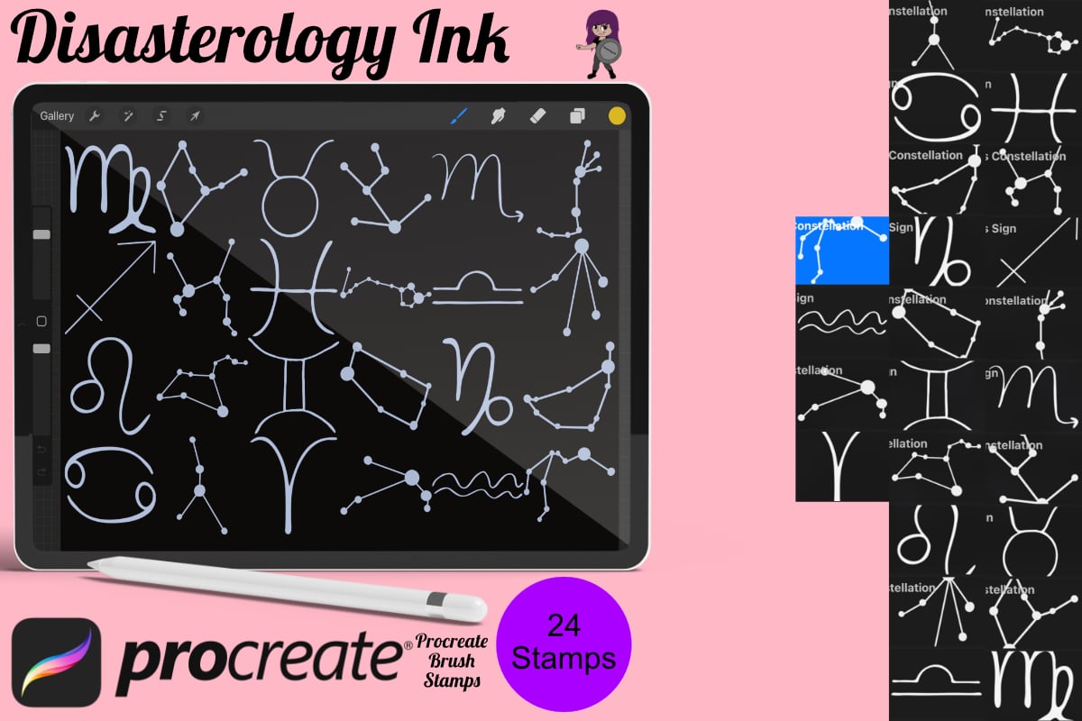 Zodiac Signs and Constellations Procreate Brush Stamps Set 1, 24 Stamps