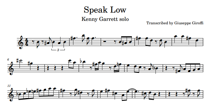 Speak Low - Kenny Garret Solo Transcription - Alto Sax (Eb)