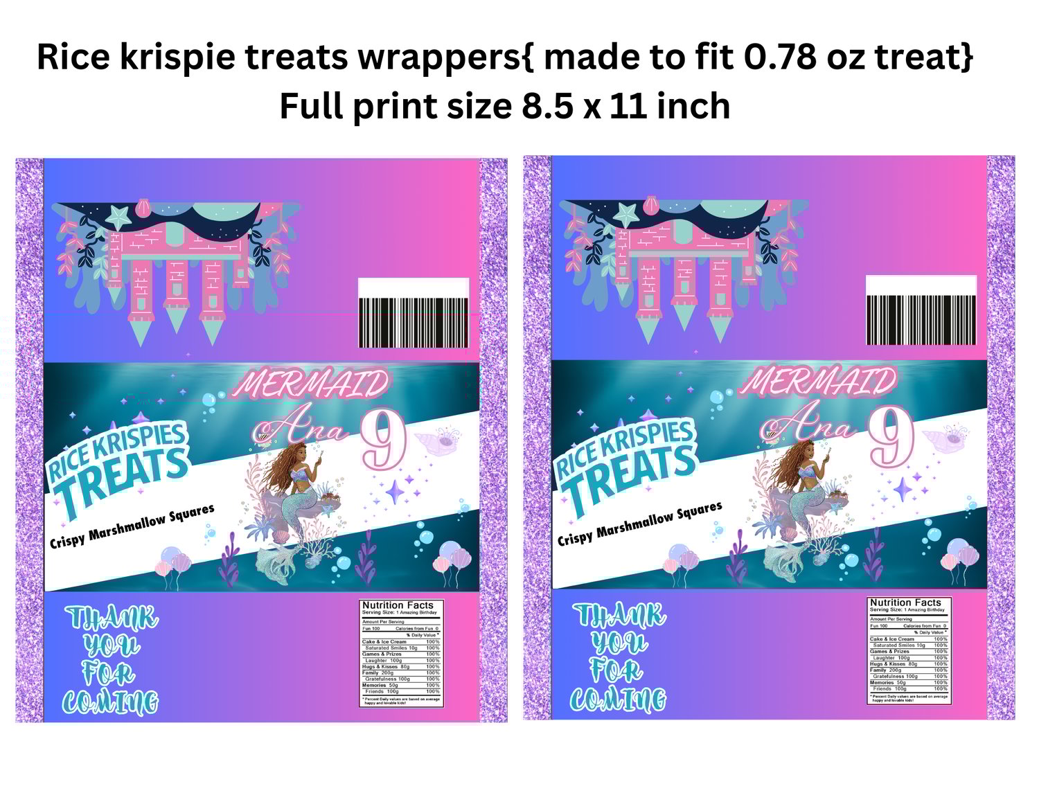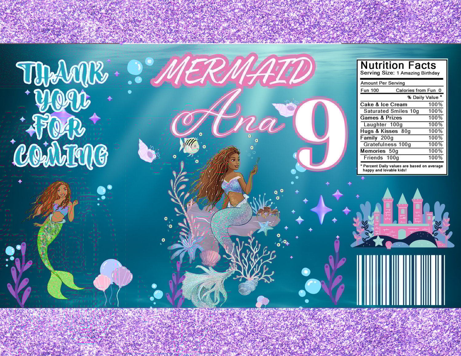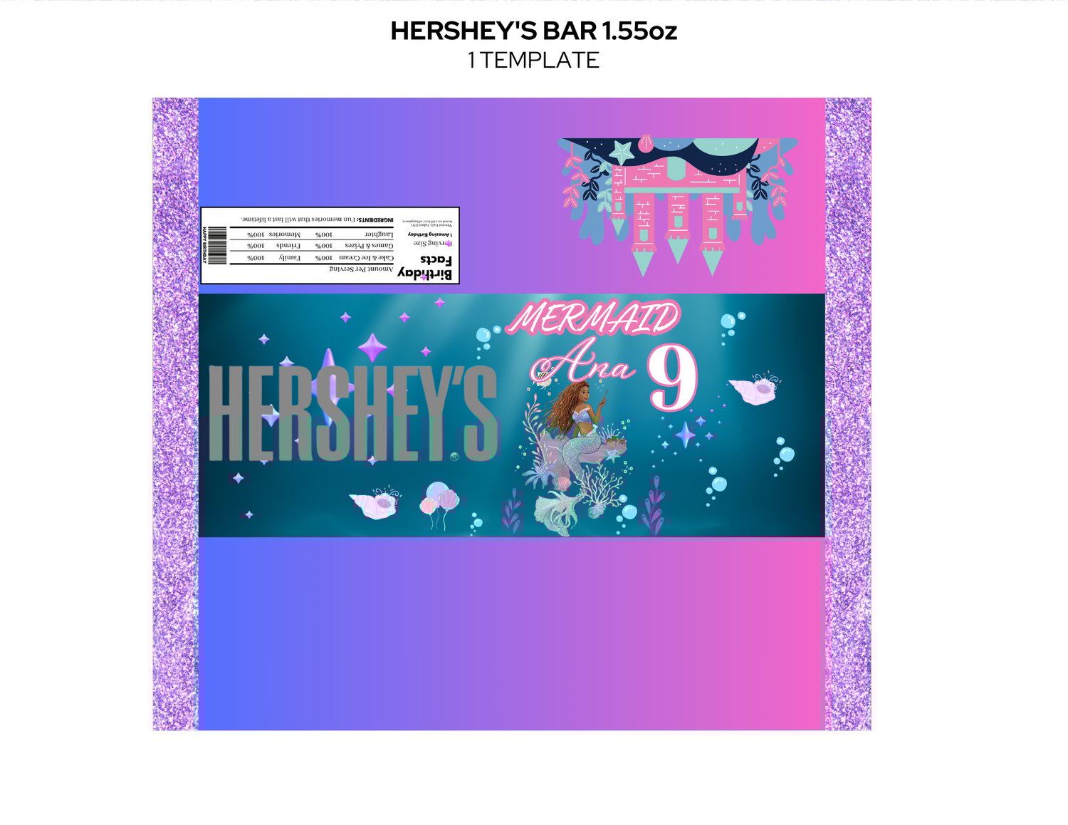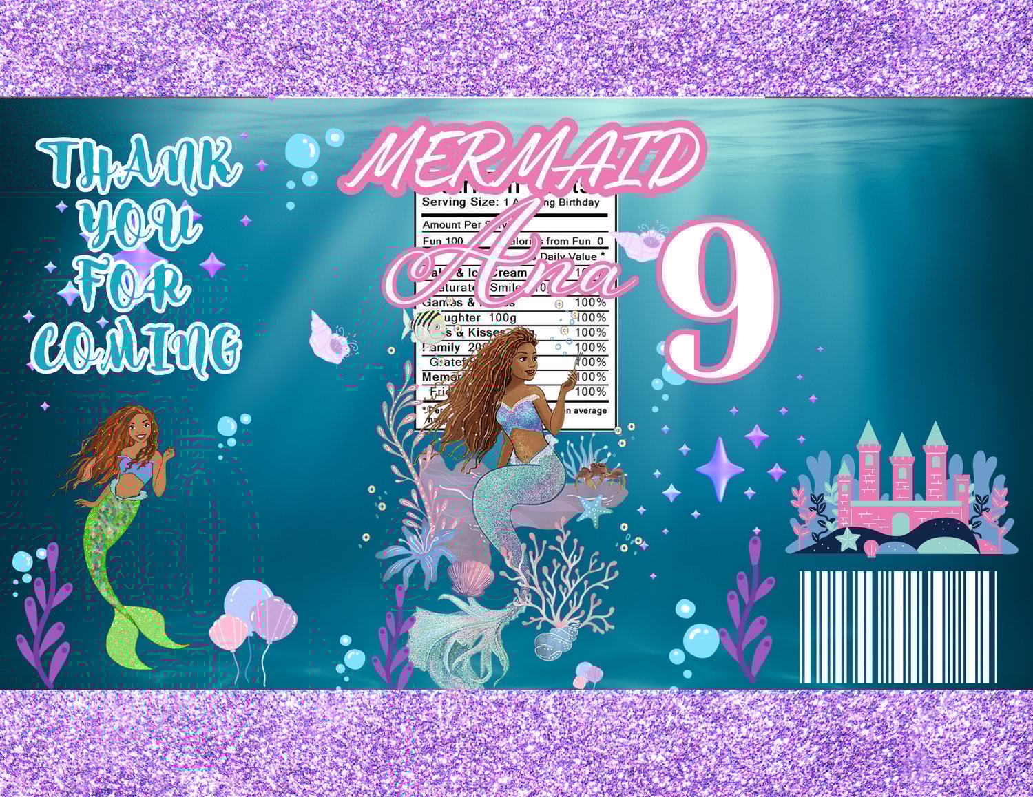 Dive into the enchanting world of the Little Mermaid with our customizable party favor templates! This digital pack includes 7 beautifully designed templates perfect for creating personalized party favors. Each template features editable designs for chip bags, Hershey bars, Pringle can, water bottle, Capri Sun pouche, rice krispie bag, and party box. Easily customize the text, fonts, titles, backgrounds, and colors using Canva. You can also add your own images or move and remove sections to create the perfect look. Ideal for birthdays and mermaid-themed celebrations, these templates will make your party truly magical.