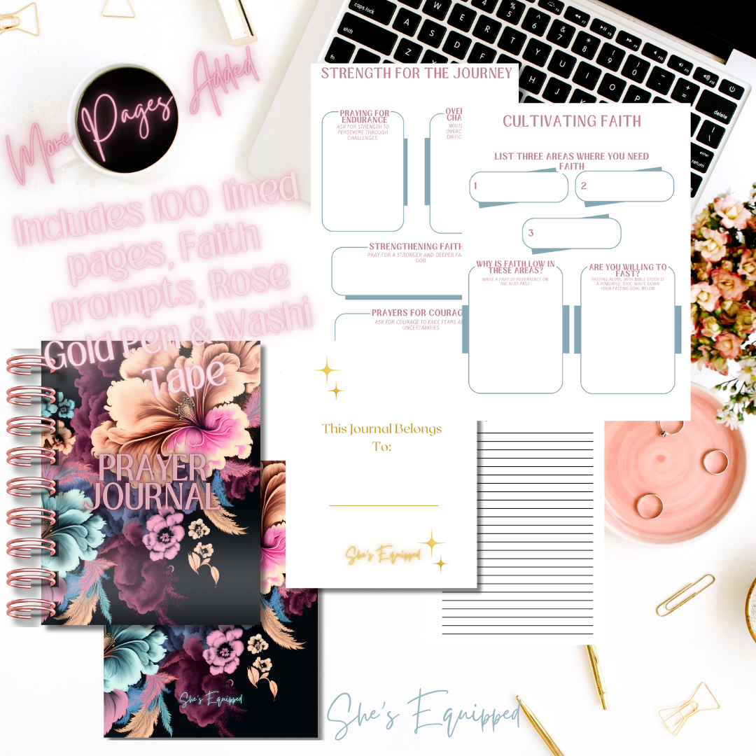 Empower your spiritual journey with the "She's Equipped" Prayer Journal, designed specifically for women of faith. This thoughtful journal includes: