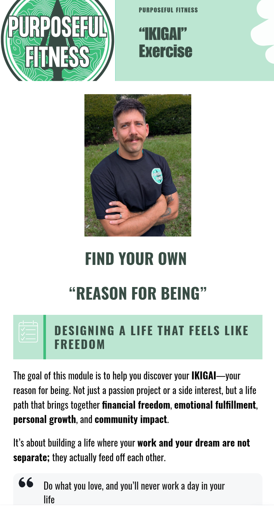 The goal of this module is to help you discover your IKIGAI—your reason for being. Not just a passion project or a side interest, but a life path that brings together financial freedom, emotional fulfillment, personal growth, and community impact.
