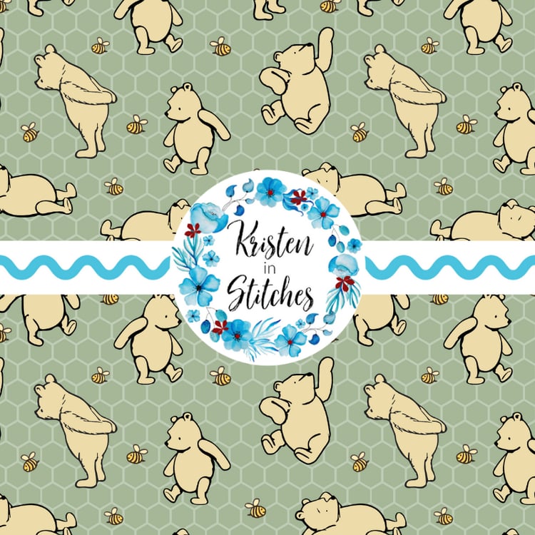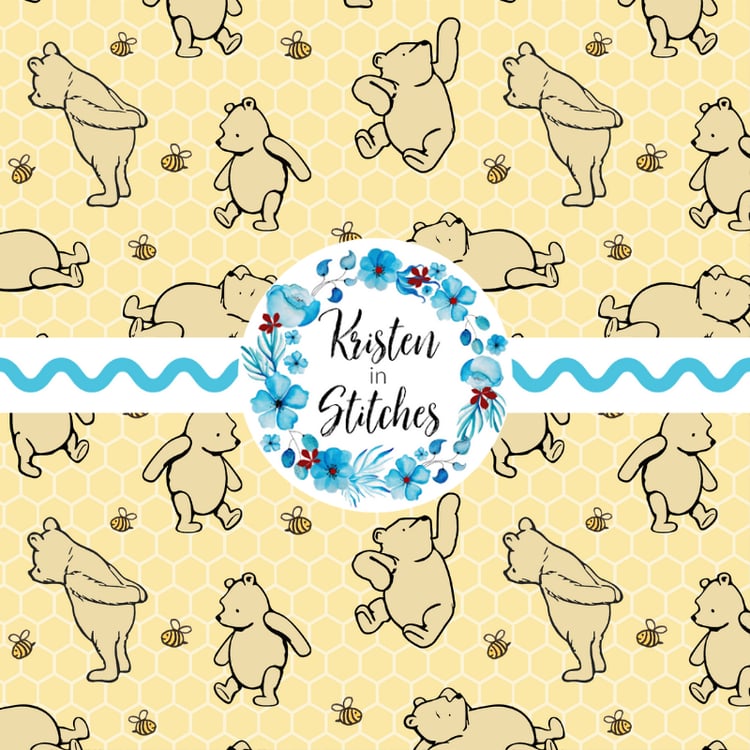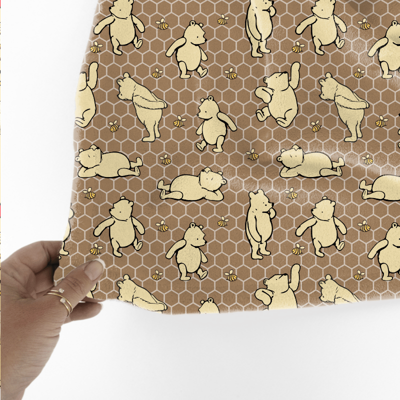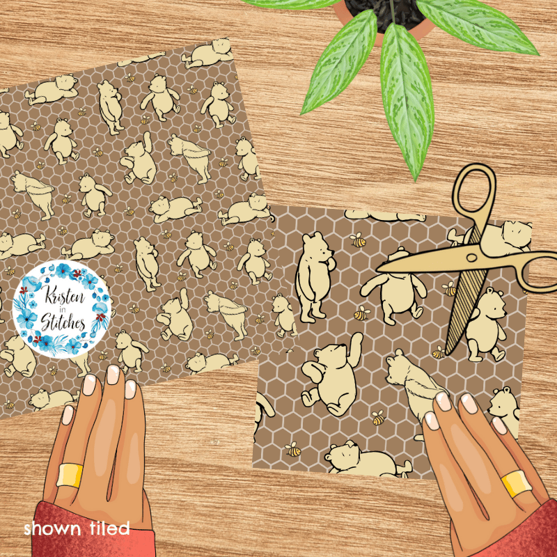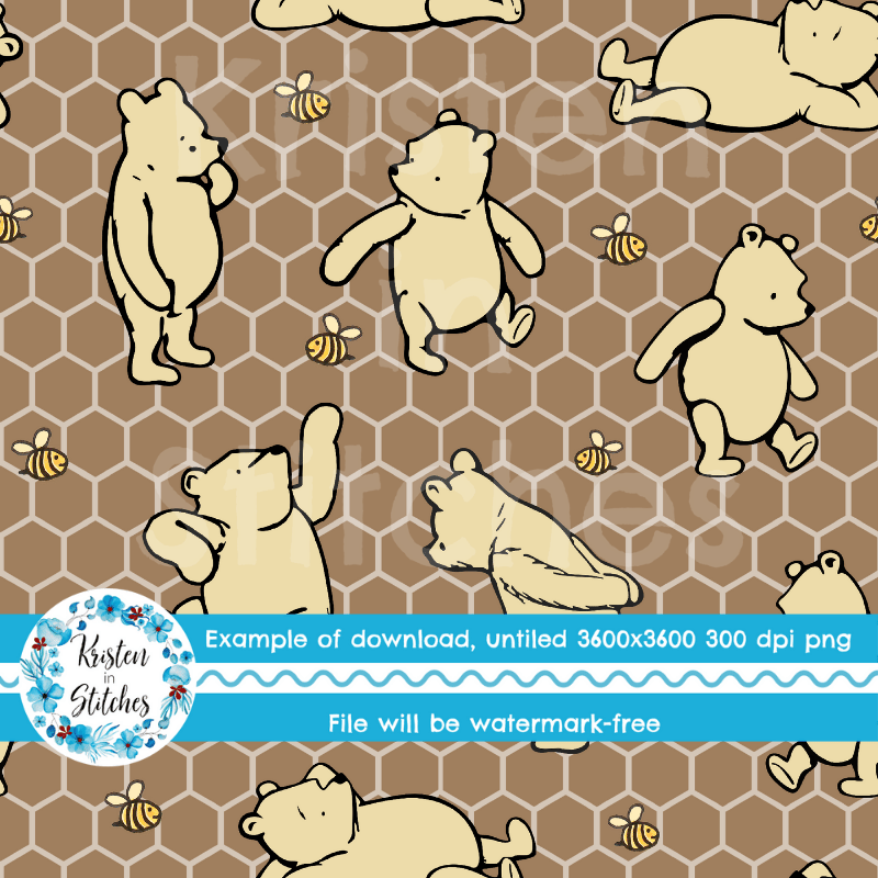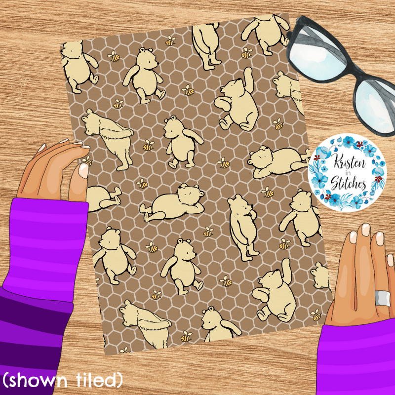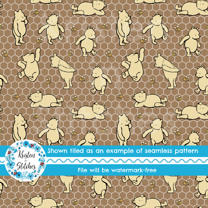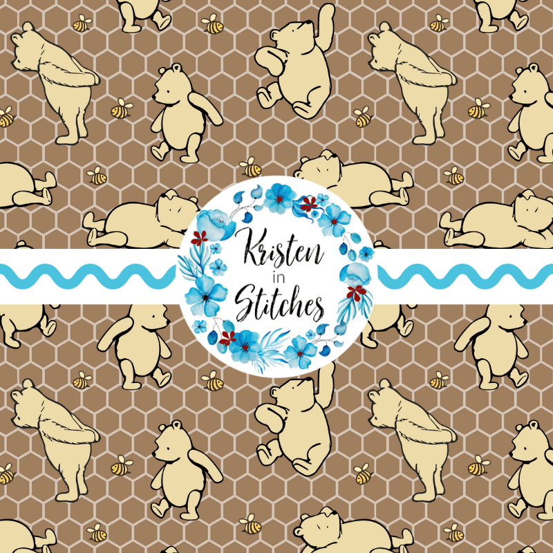 Classic Winnie the Pooh and Bees Nursery Seamless Pattern, Brown Honeycomb