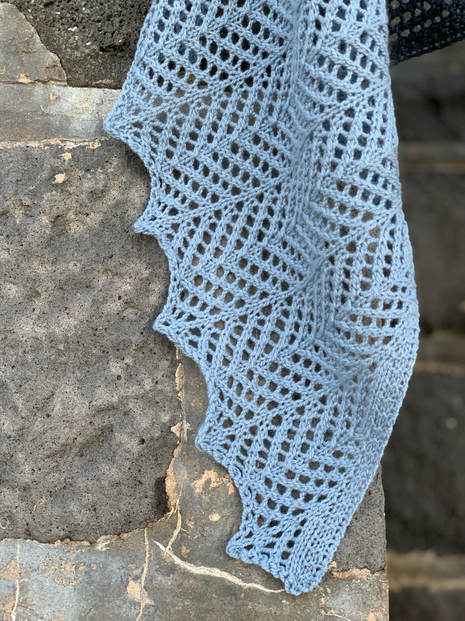 This shawl is worked from end to end, with decreasing and increasing used to knit the shawl on the bias creating a parallelogram shaped wrap.