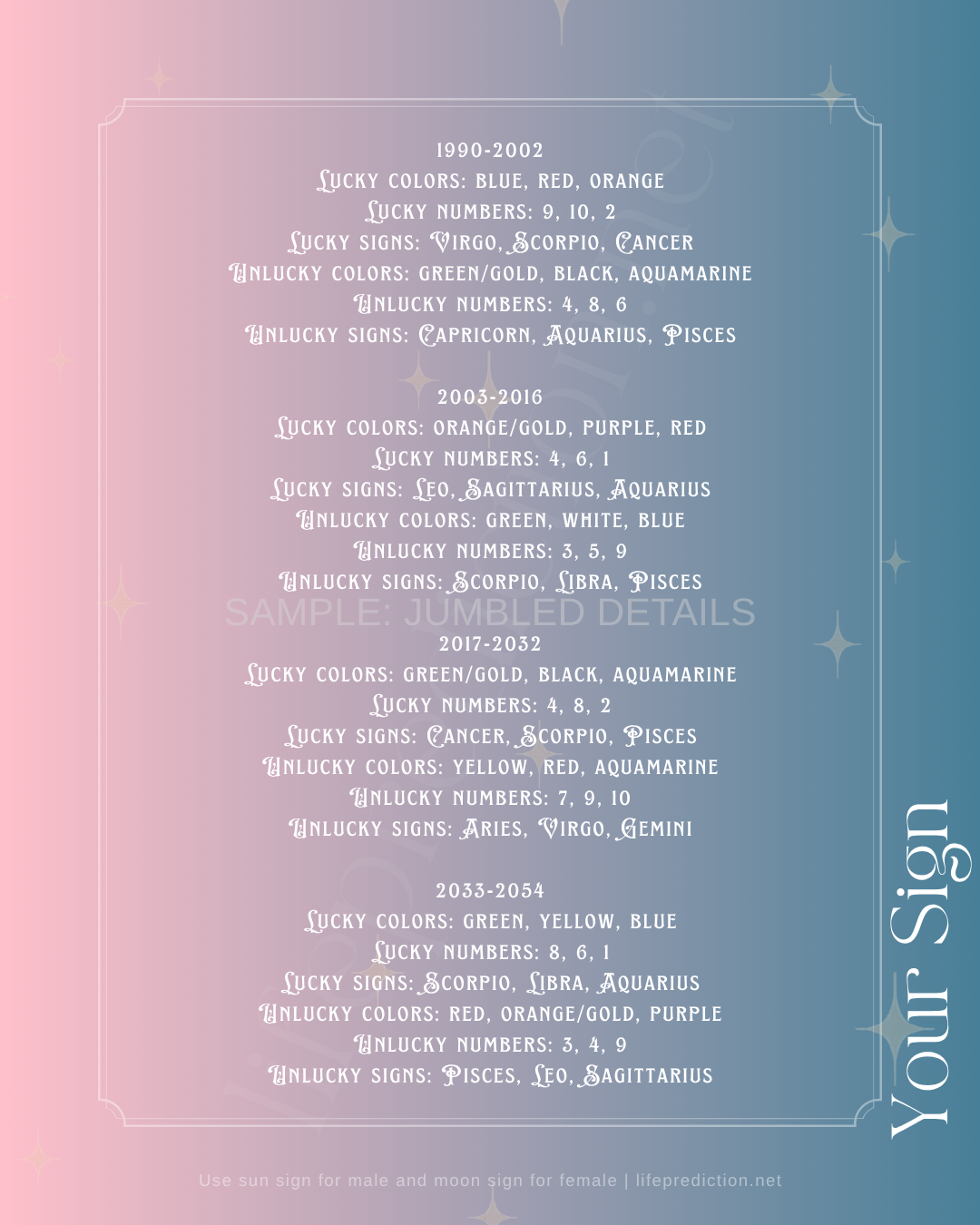 Lucky and unlucky colors, numbers & zodiac signs for Libra sun sign male or Libra moon sign female.