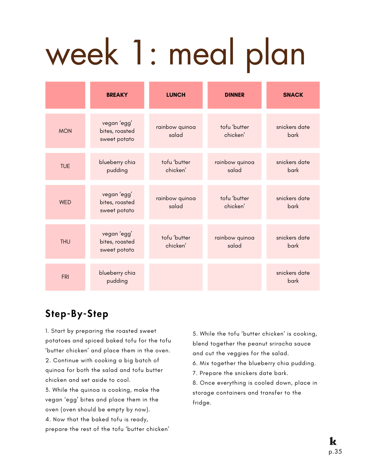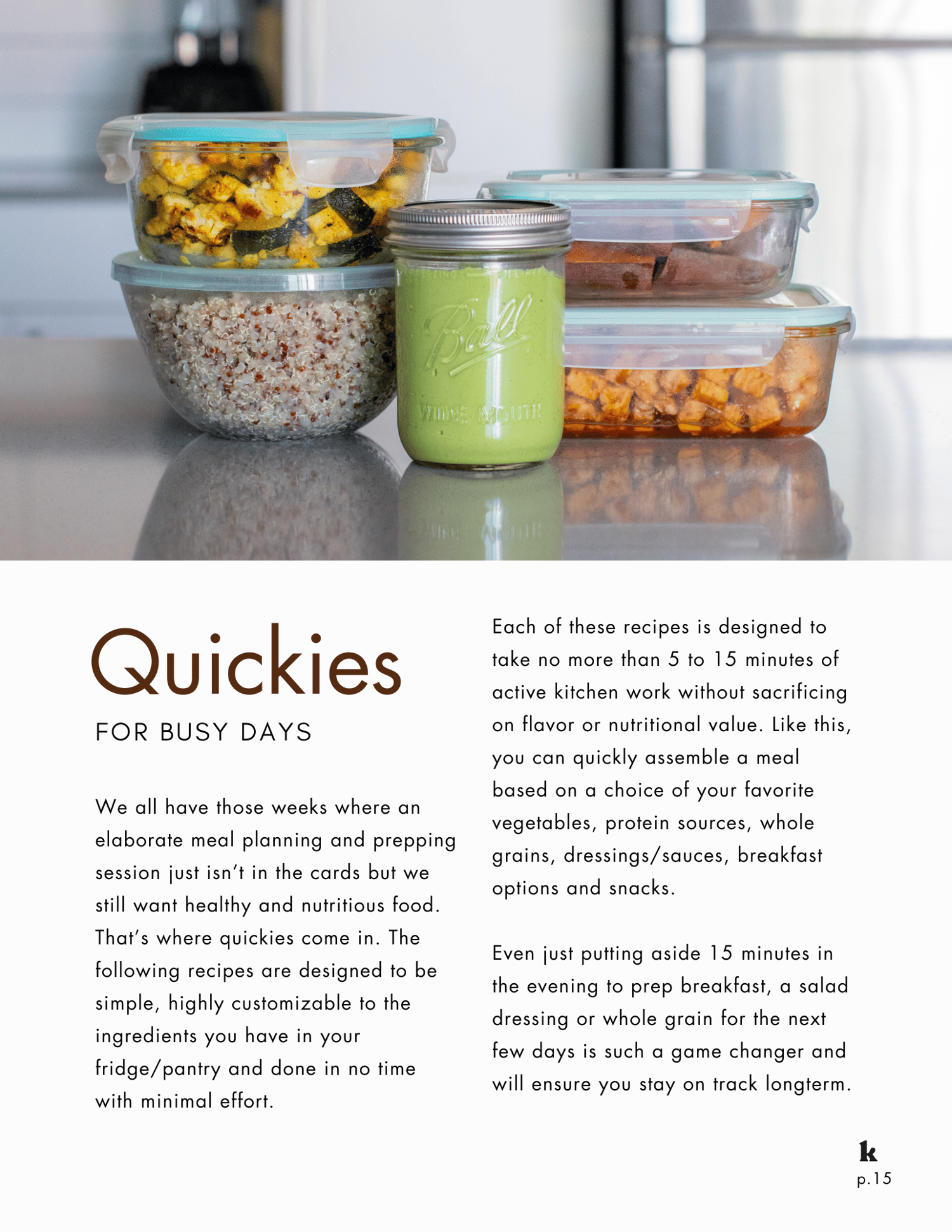 Packed with 55+ nourishing plant-based recipes, a detailed 6 week meal plan (including grocery lists and nutritional data), freestyle meal prep quickies and tons of tips and tricks on how to meal prep efficiently, you'll have everything you need to start prepping and eat good!