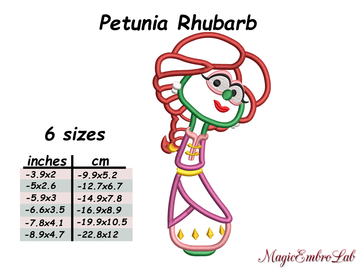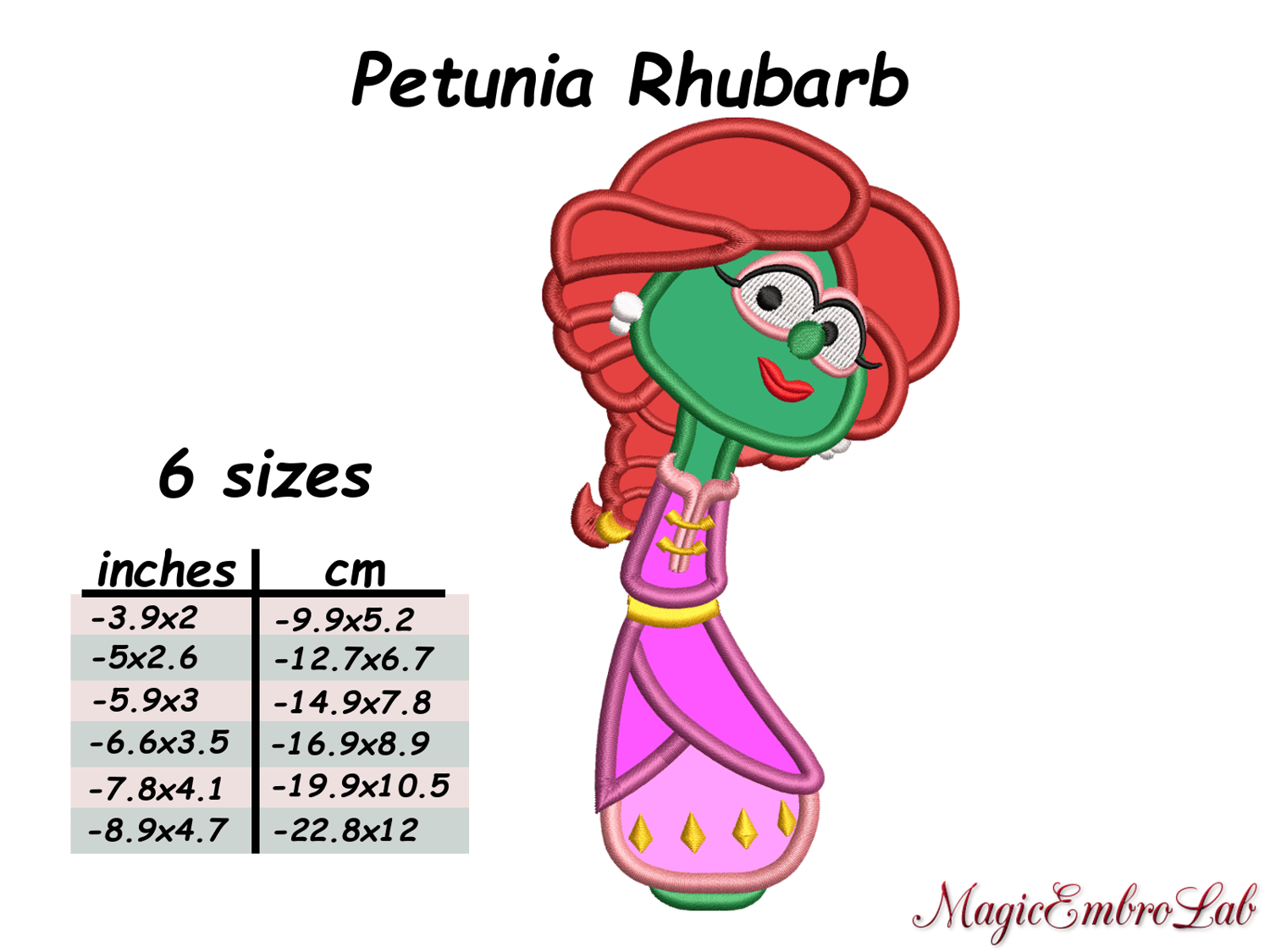 VeggieTales Petunia Rhubarb Applique, 6 sizes, Instant Download