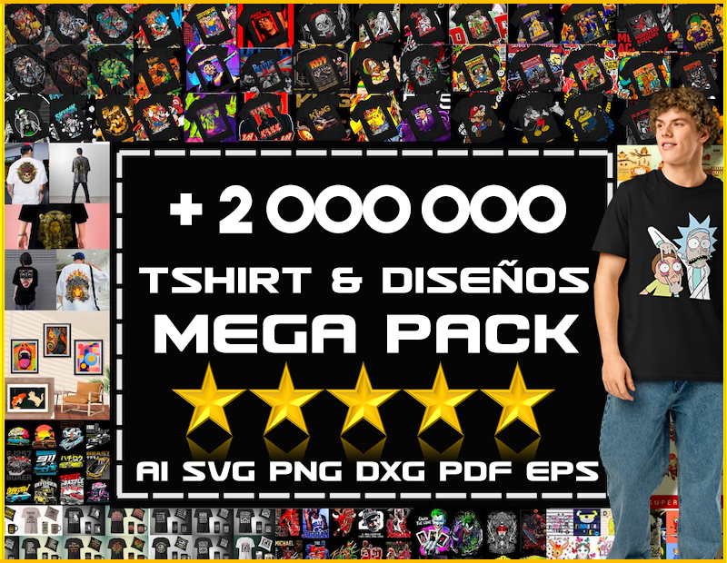 Mega Pack SVG PNG Bundle + 2 000 000 Design Tshirt Vectors / Diseños de Camisetas & Diseños de Todo Tipo / 53 GB / ⭐