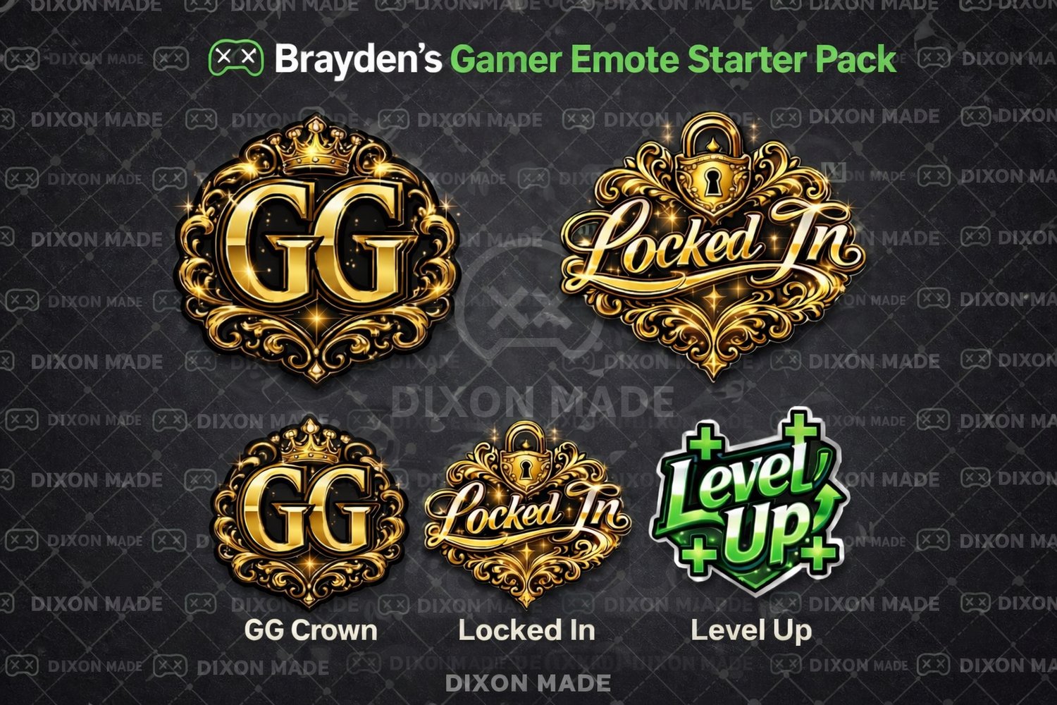 This starter pack includes three high-energy gamer emotes perfect for Twitch, YouTube, Discord, and gaming communities.