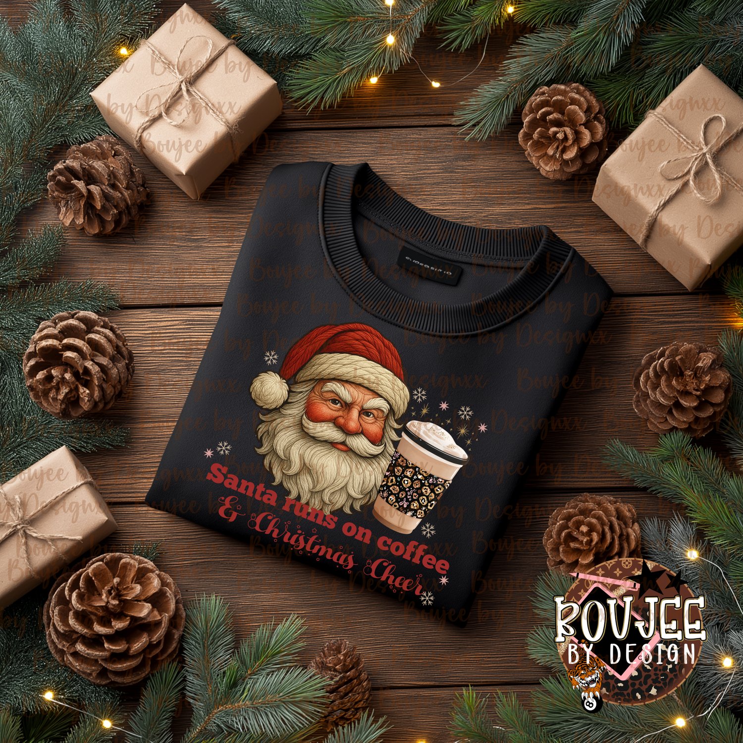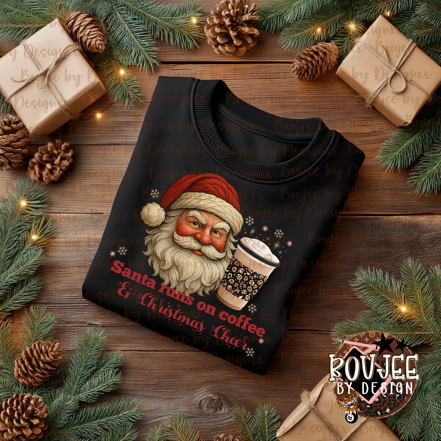 Add a little festive fuel to your holiday designs with this cozy “Santa Runs on Coffee & Christmas Cheer” PNG! Featuring a vintage yarn-textured Santa and a trendy leopard print coffee cup, it’s the perfect mix of classic Christmas charm and modern boujee vibes.