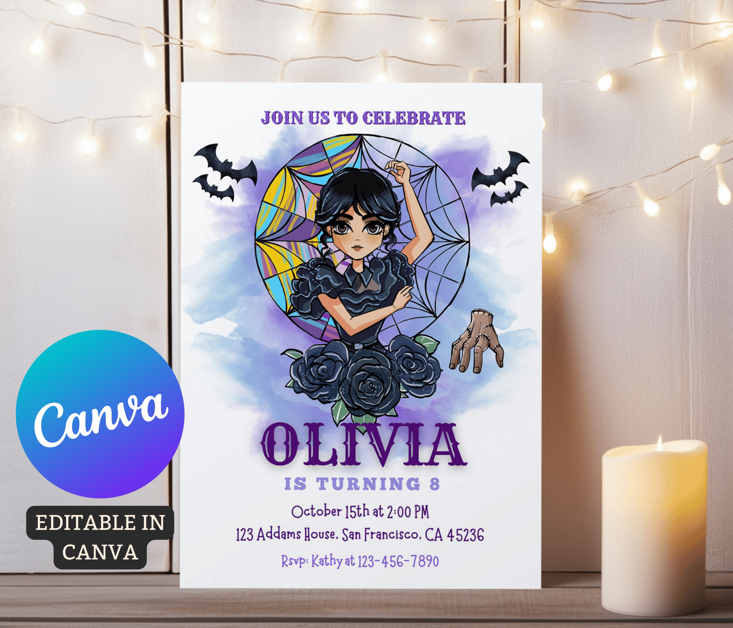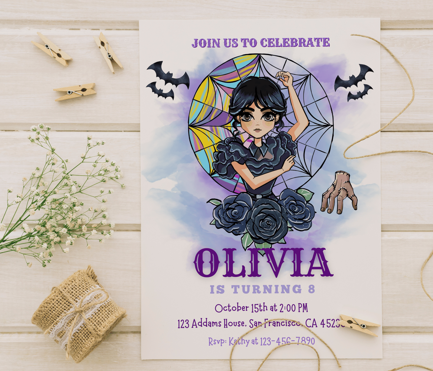 Editable Digital Wednesday Birthday Invitation Download for Print or Text 5x7 Wednesday Addams
