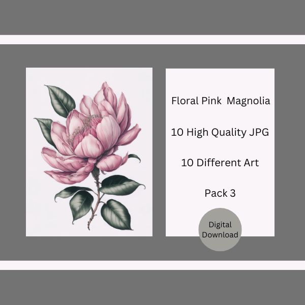 Floral Pink Magnolia Digital Art Pack 3