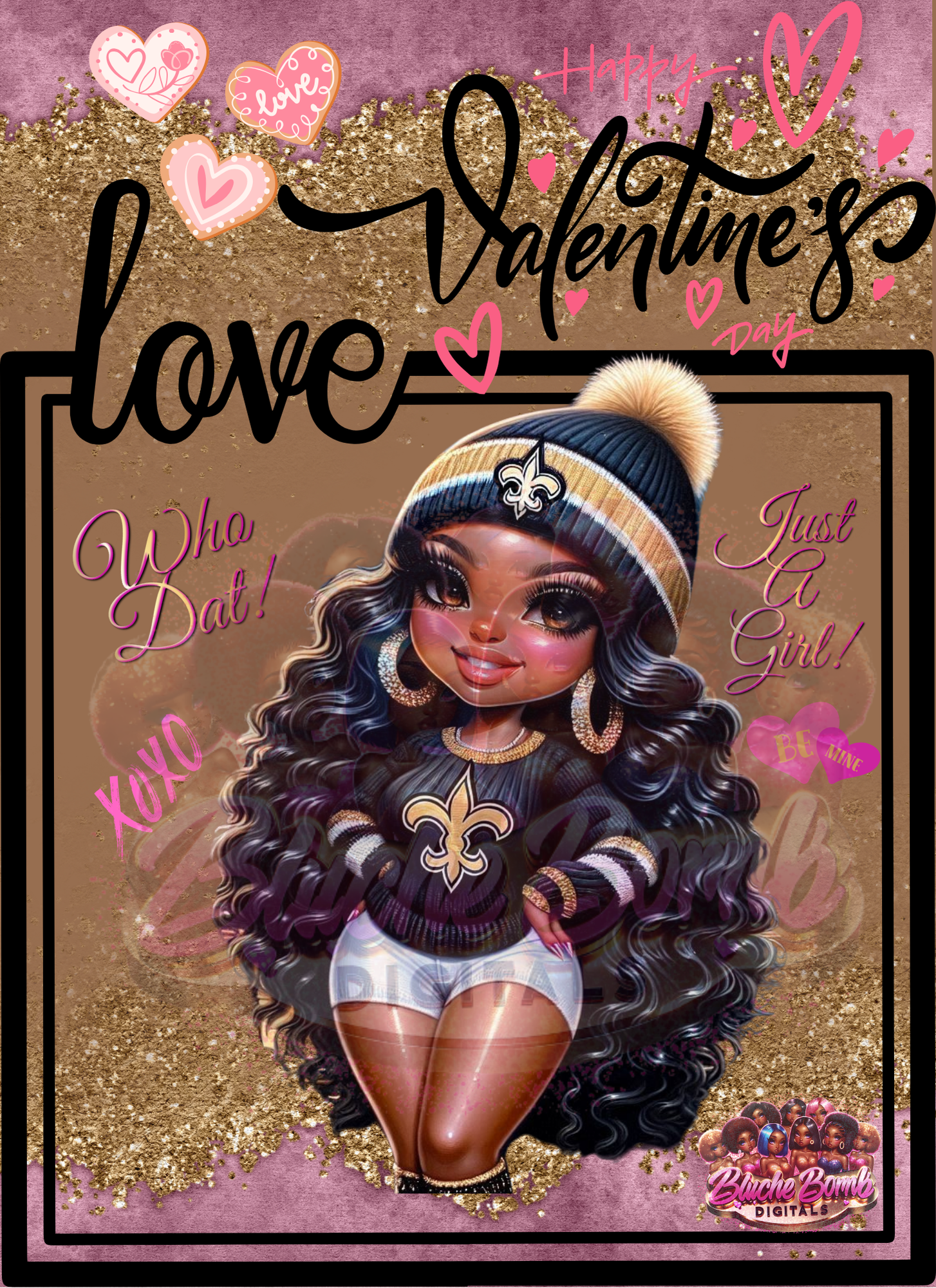 "Celebrate Valentine's Day with bold style and team pride! This eye-catching digital artwork features a glamorous 'Who Dat' theme with shimmering gold accents, making it perfect for fans who love their team and the holiday. Instantly downloadable for personal or creative use!"