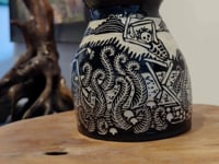 Each vase is a one-off design in the collection, channelled from the gods and monsters that prowl the edges of consciousness. Vase measures 140mm high. Local pickup available at the end of the world (Tassie), coz shipping be laffable these days.