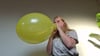 Tamar knows how to b2p. Without hesitation she blows this yellow balloons until it bursts into 100's of pieces.