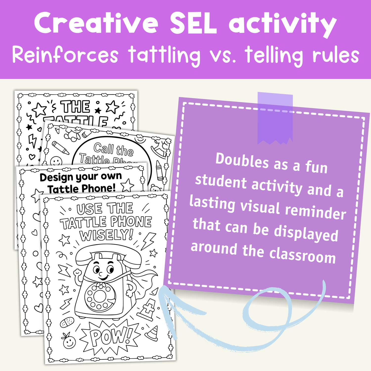 Kids get to color, decorate, and learn when it’s time to use the Tattle Phone and when it’s time to tell the teacher.