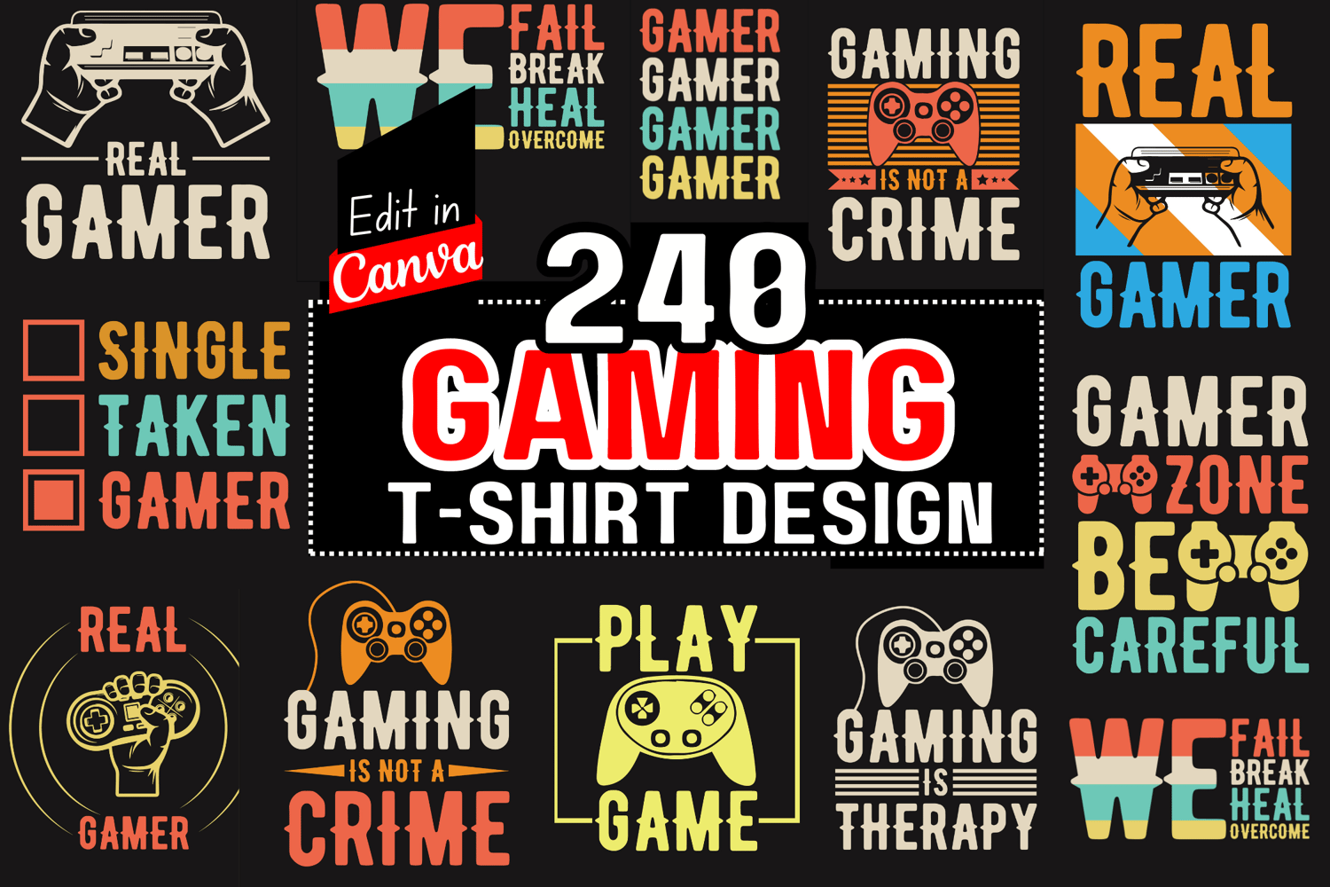 240 Edditable Gaming T-shirt Design For canva | Svg, PNG, EPS Gaming tshirt for your PO Business |