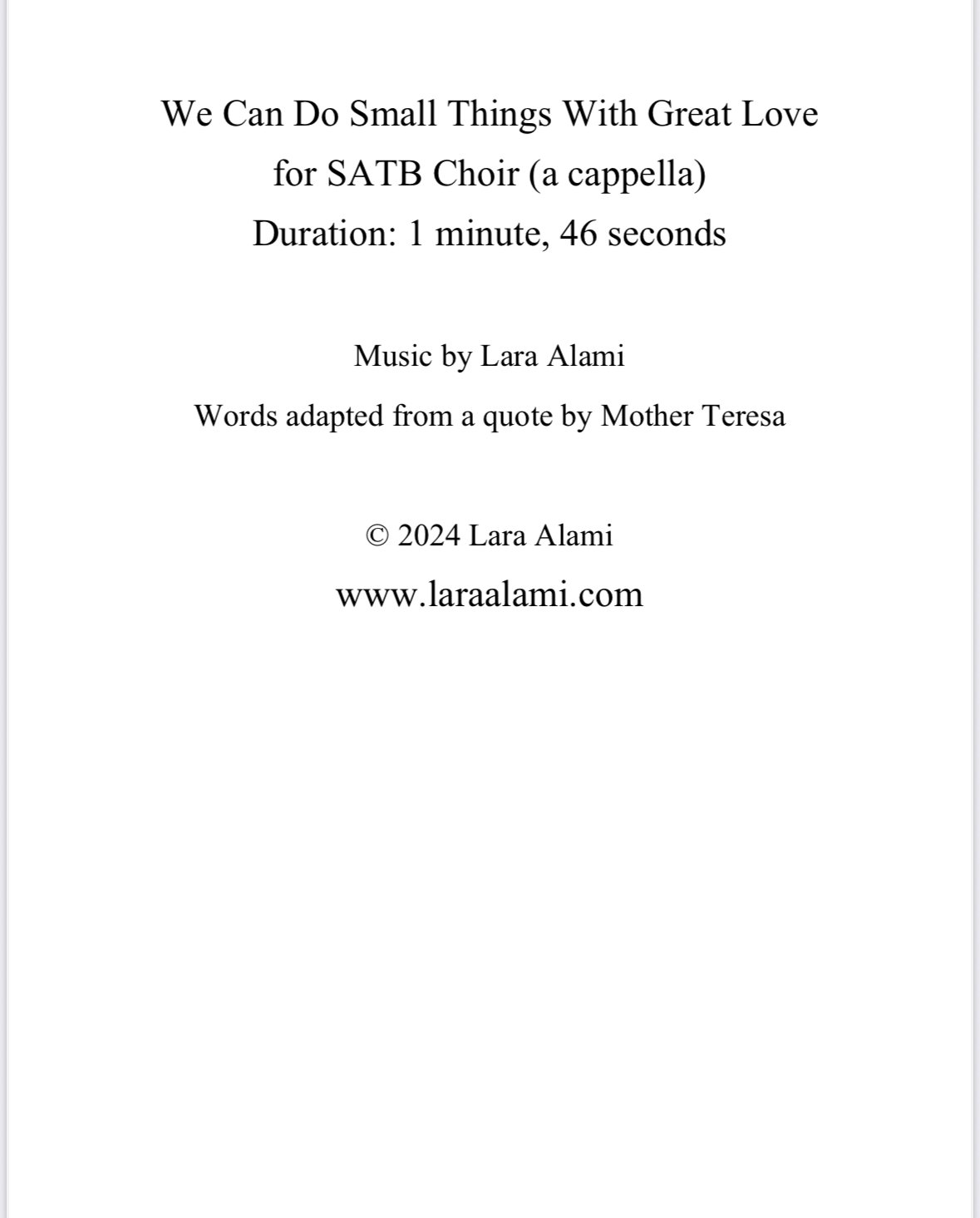 A warm, contemplative SATB a cappella setting of Mother Teresa’s words: