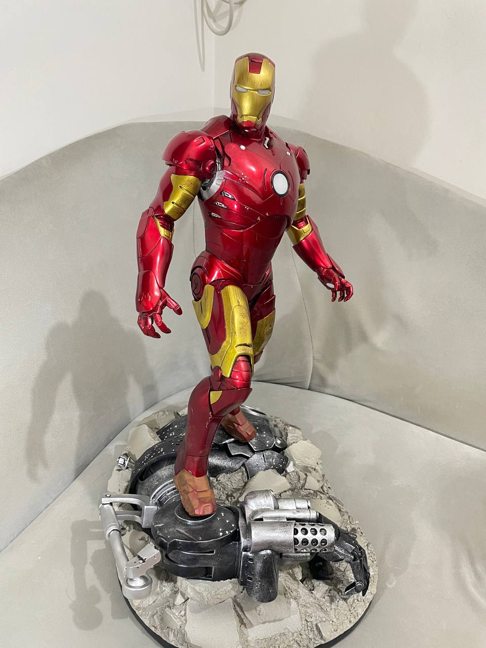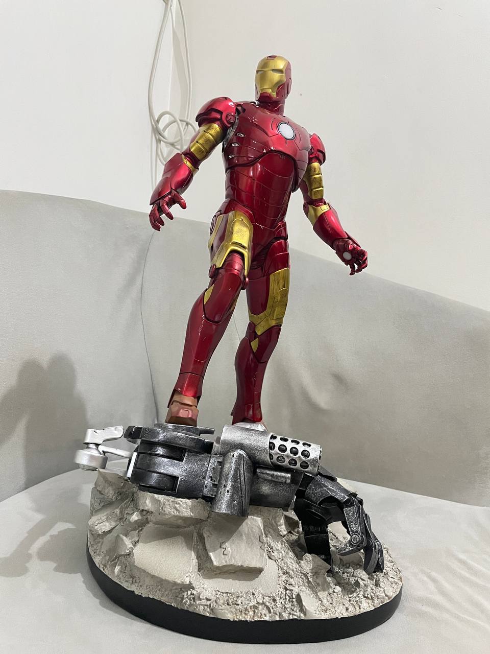 Crafted from high-grade resin, this piece captures every curve, panel, and metallic sheen of the legendary MK3 suit with exceptional sculpting precision. Its battle-damaged base features a crushed mechanical arm beneath Iron Man’s foot, giving a dramatic sense of victory and presence.