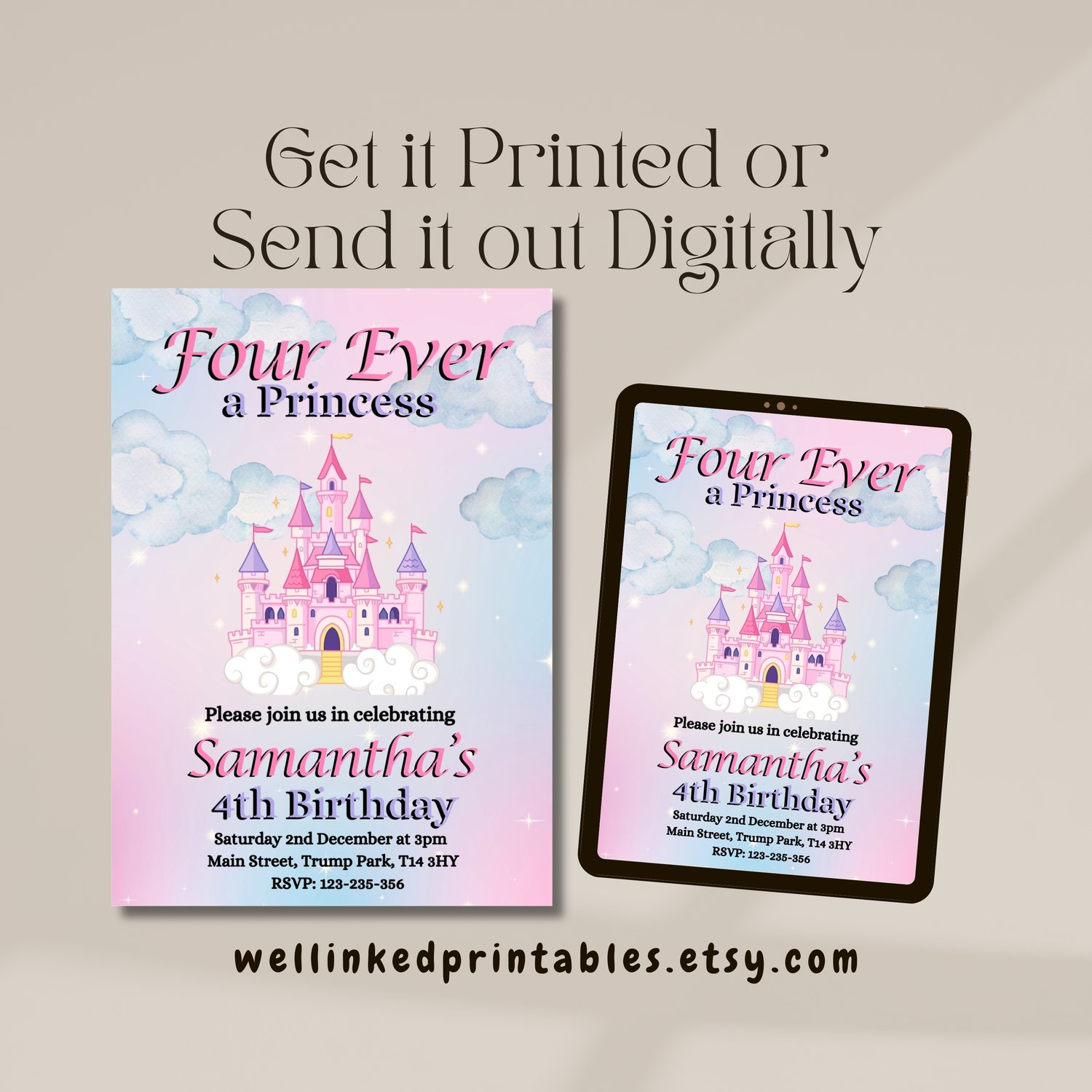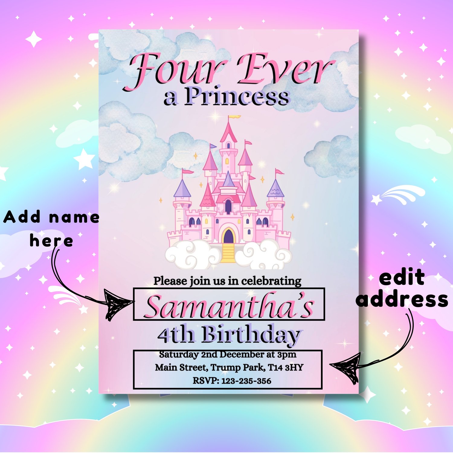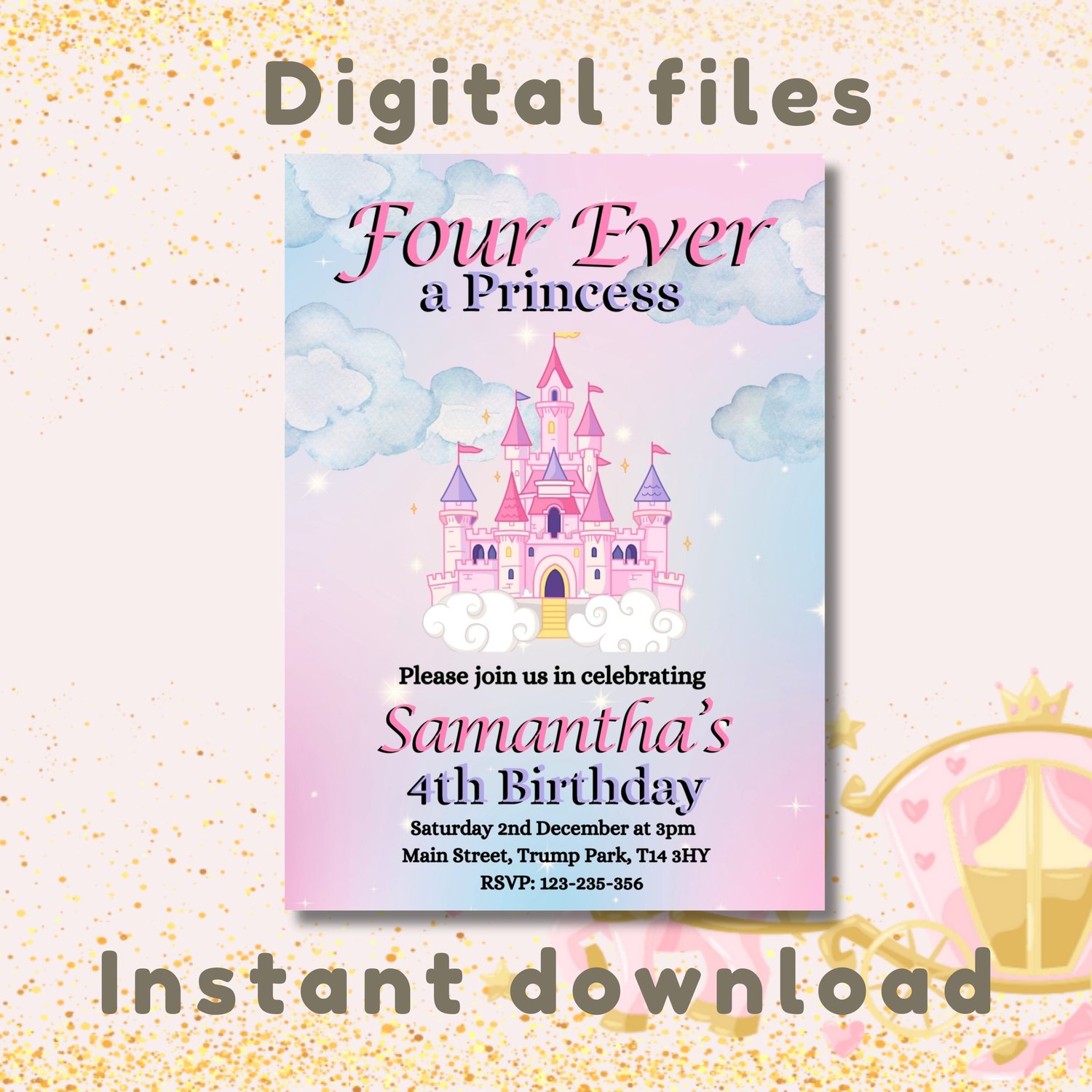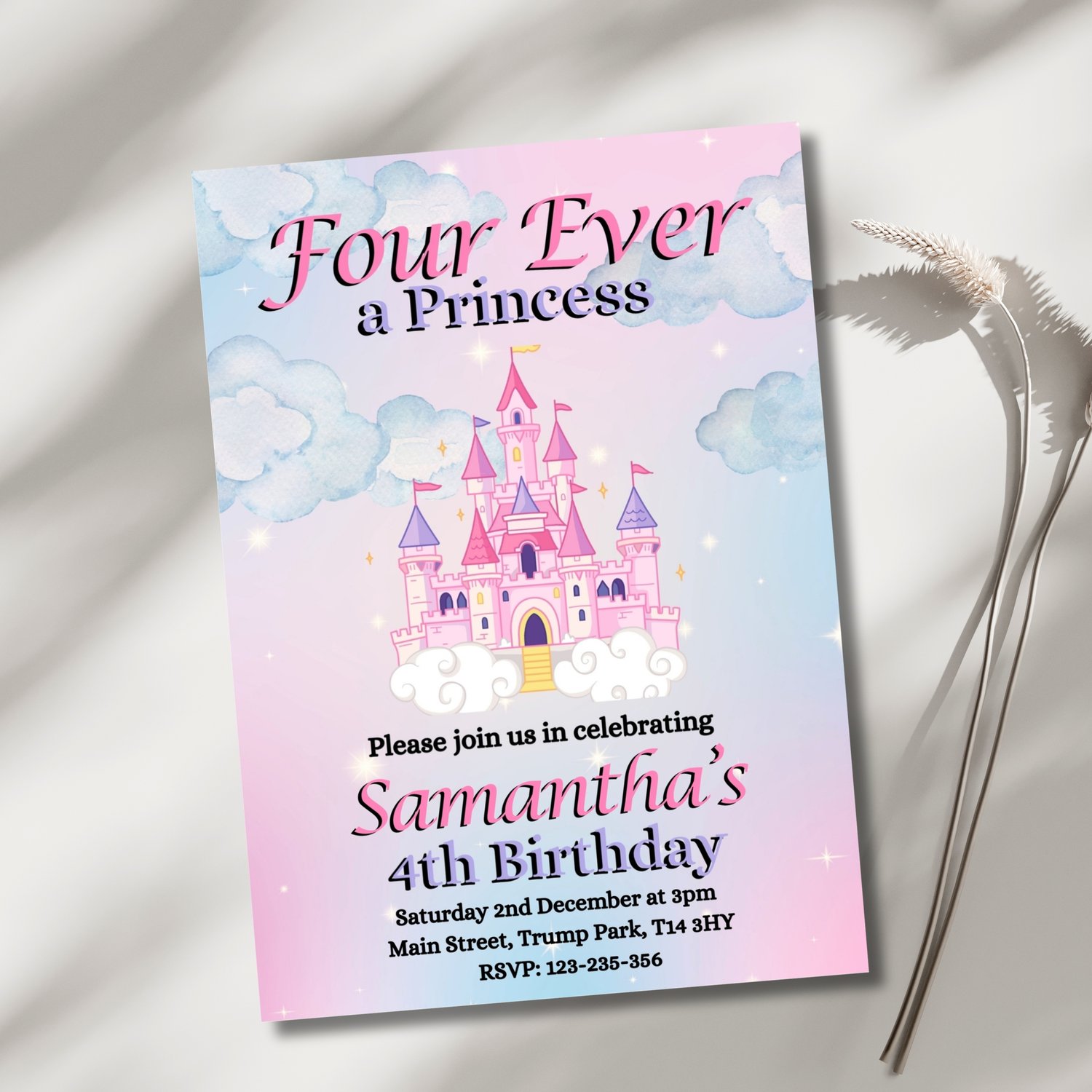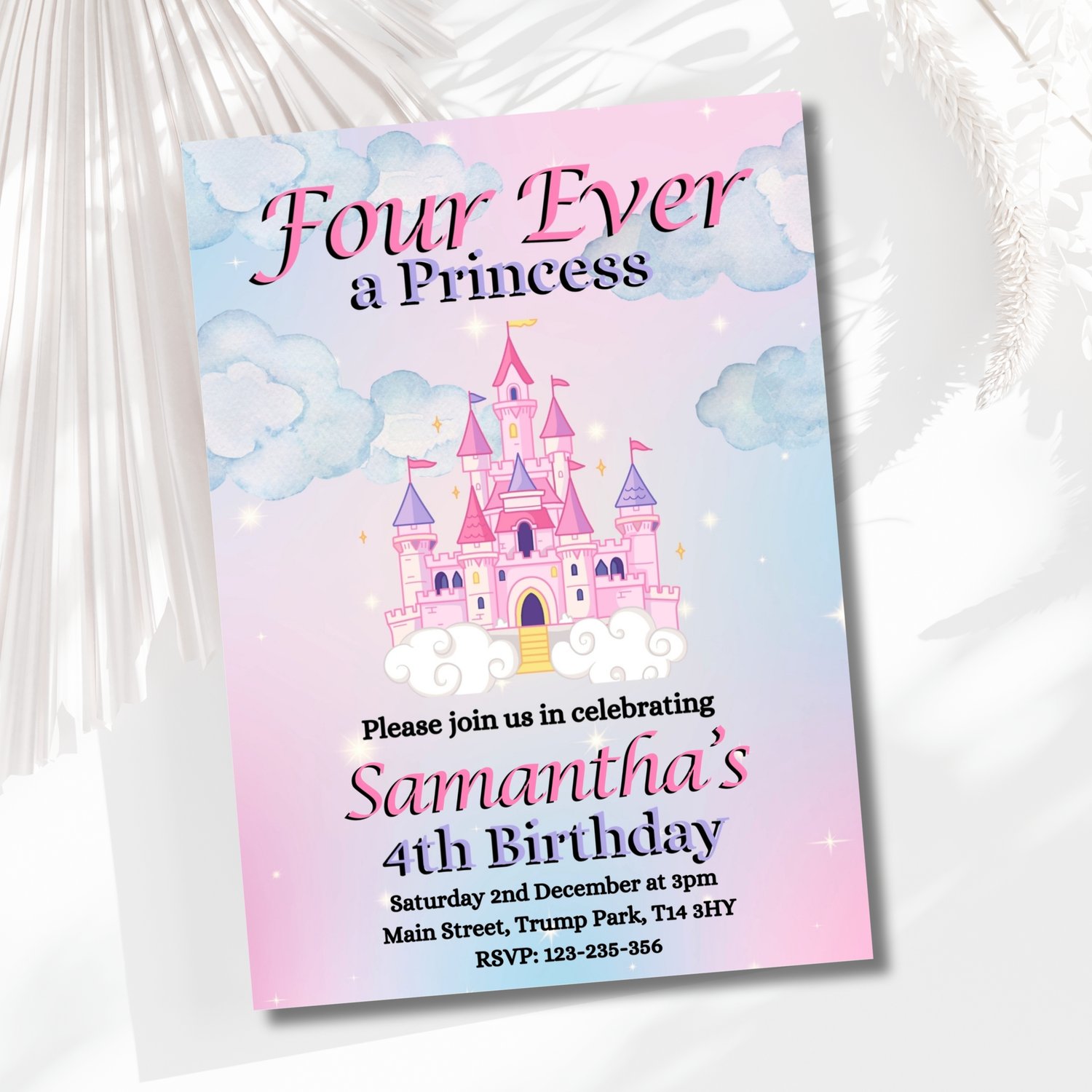 By choosing our "Four Ever a Princess" invitation, you're ensuring a memorable and magical start to your child's special day.