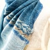 Dieser Schal hat alles… die Farbschattierungen von tiefem Wasser bis an den Strand heran, die Schaumkonen am Strand, und kleine Muscheln …