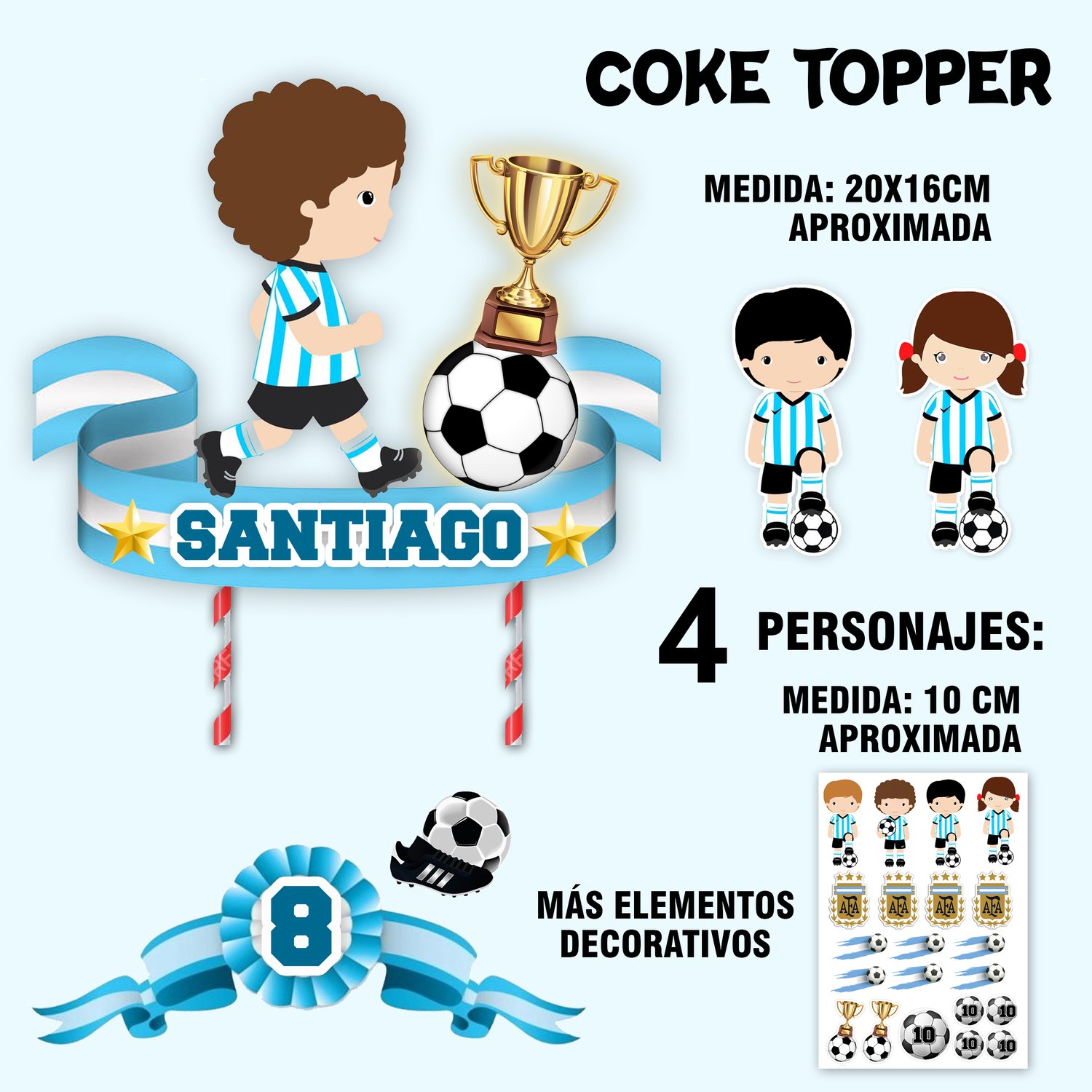 KIT IMPRIMIBLE CAKE TOPPER ADORNO TORTA ARGENTINA CAMPEÓN