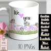 Flower Names with little bears PNG Bundle, Mother, Mum, Mom, Mama, Grandma etc – 10 Transparent PNGs