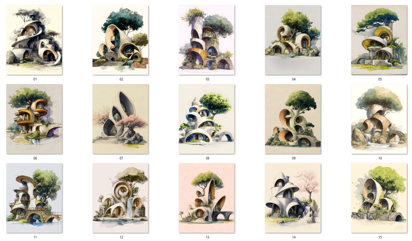 What You Get: Fantasy Shell Houses – 15 Organic Architecture Art Prints