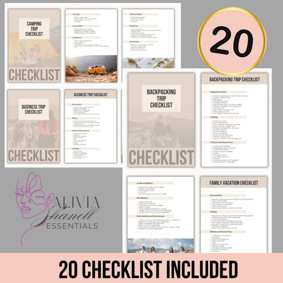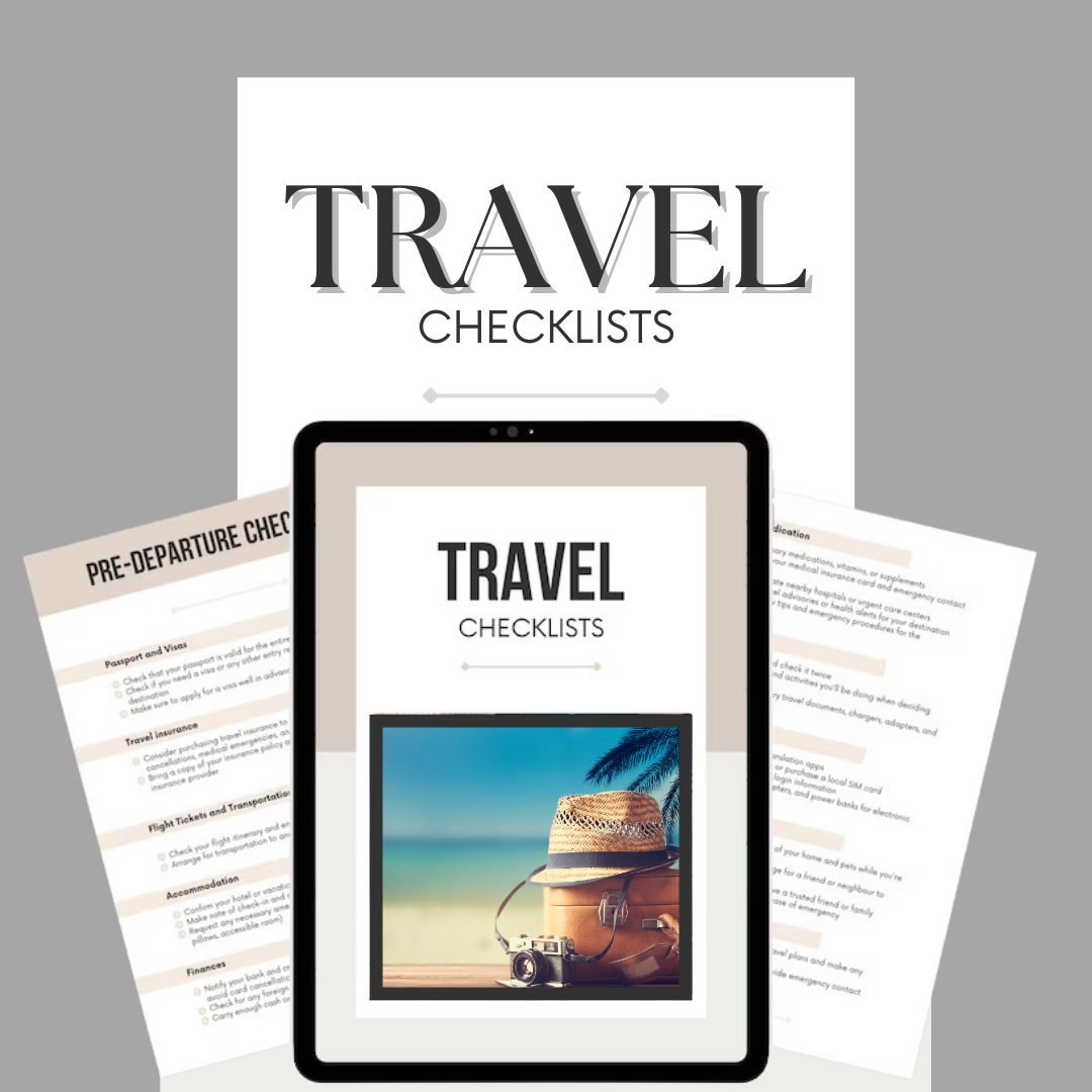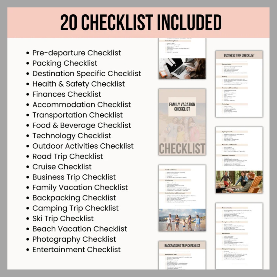 Stay organized and stress-free on your next trip with our Digital Travel Checklists, featuring 20 comprehensive checklists to ensure you pack everything you need for any adventure. From family vacations and weekend getaways to international trips and business travel, these detailed checklists cover it all.