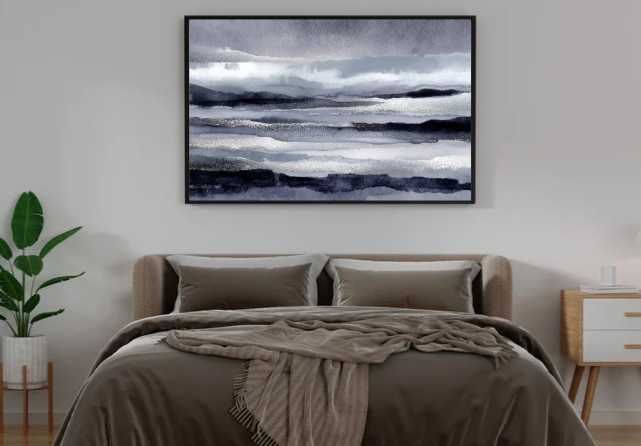 This high‑quality abstract watercolor artwork features soft grey, blue and white layers that flow like mist across a calm horizon. Smooth gradients and atmospheric depth create a serene, modern composition that suits minimalist, coastal and contemporary interiors. Delivered as a high‑resolution digital download in 16 sizes, this unique fine‑art print is perfect for framing, gallery walls, home décor or studio spaces. A peaceful, elegant piece that brings clarity, softness and refined beauty into any room.