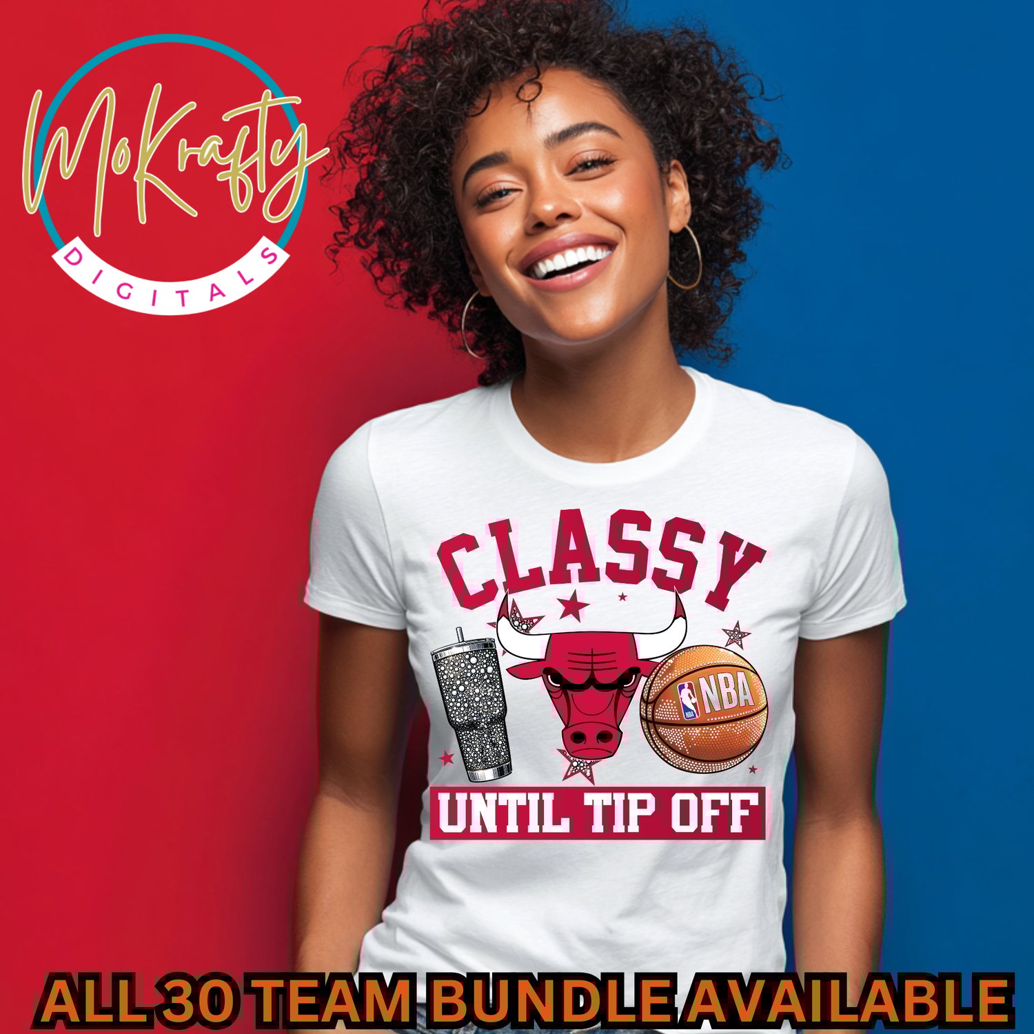 Elevate your entire fan-merch collection with the ultimate basketball creator’s bundle — a full set of 30 premium “Classy Until Tip Off” PNGs, each inspired by top basketball team colors and crafted with that signature MoKrafty glam.