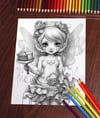 24 Candy Fairy Coloring Page Book for Adults + kids - Instant Download Grayscale Coloring Page, Printable PDF, Girl coloring, Fairy Coloring