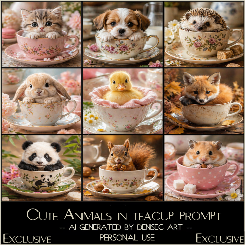 Cute Animals in Teacup Prompts