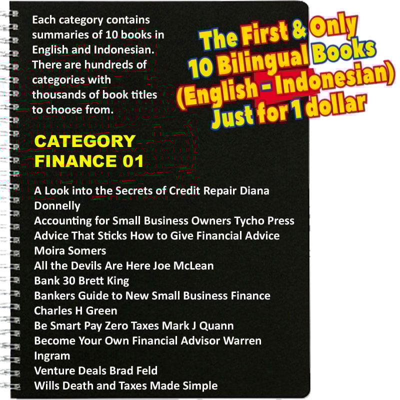 · Untuk 10 buku summary dalam 2 bahasa (English-Indonesian), hanya perlu 1 dollar saja, atau Rp.16.000,-