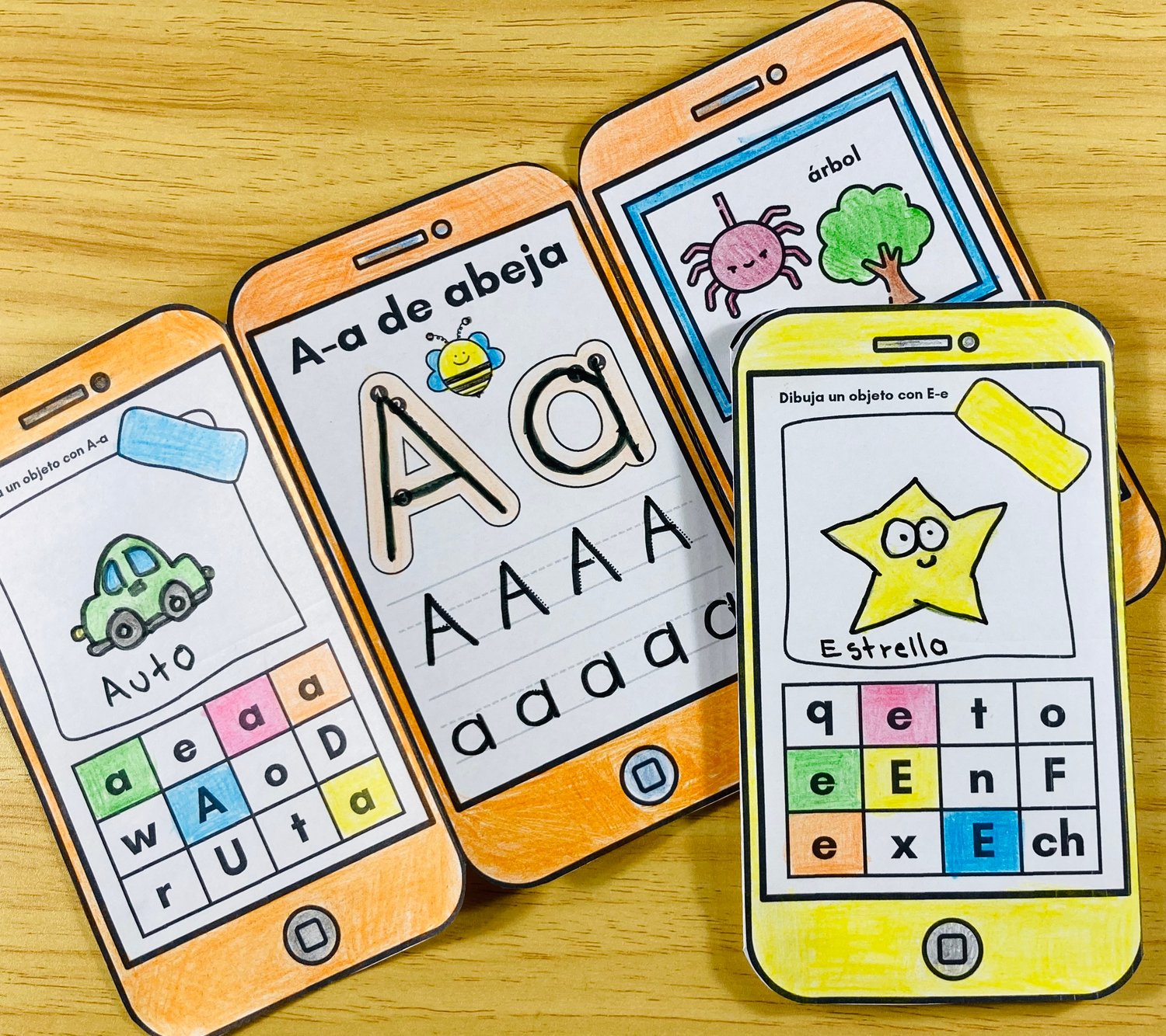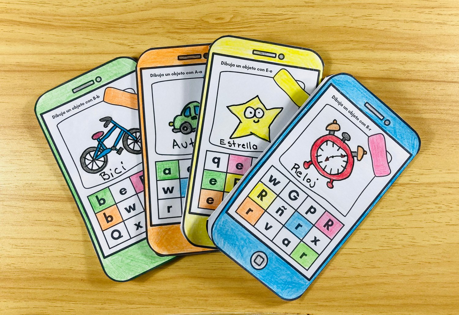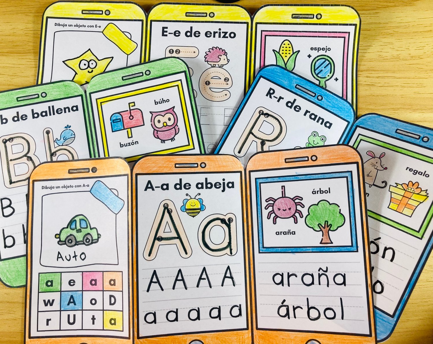 Este divertido librito en forma de celular está diseñado para trabajar el reconocimiento y escritura de las letras de manera interactiva y atractiva para los niños. Cada librito incluye actividades que refuerzan la identificación, el trazo y la asociación de cada letra con palabras e imágenes.