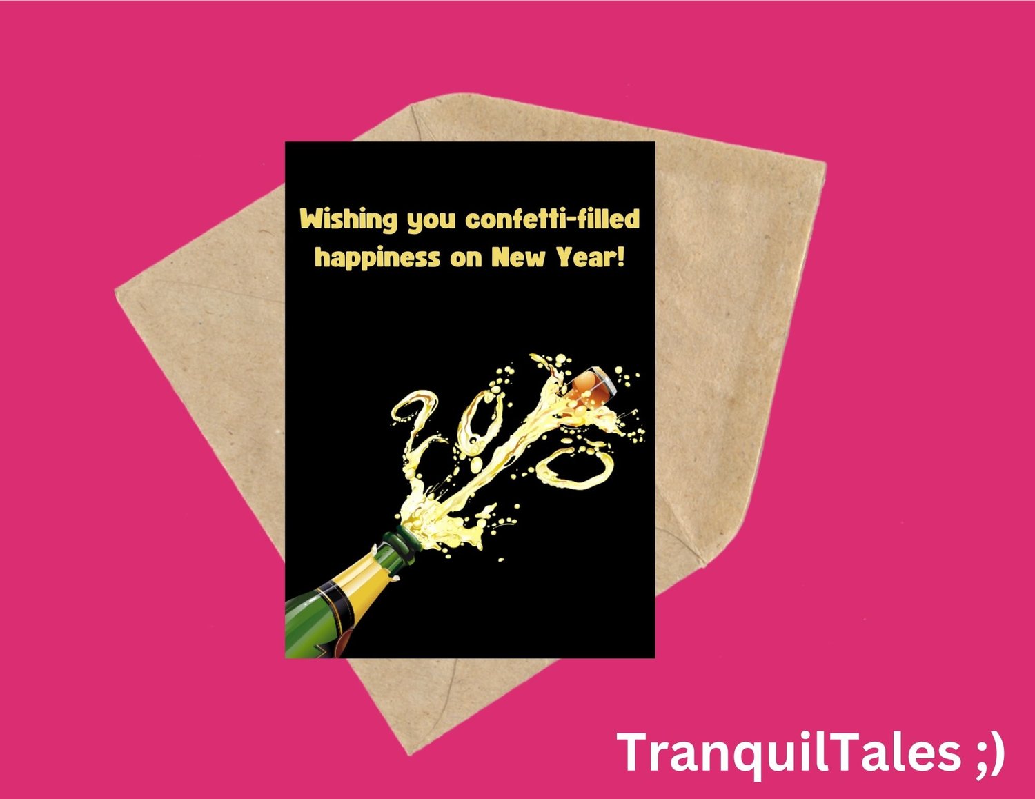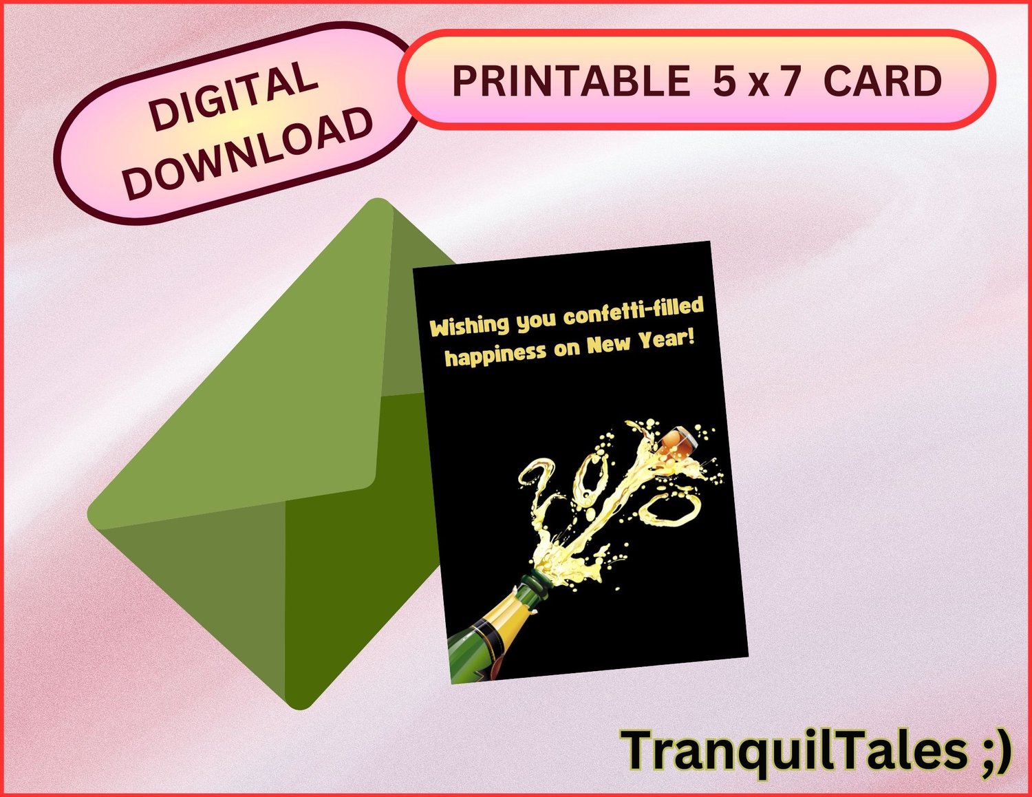 Wishing you confetti-filled happiness on New Year! Card - 5" x 7" inches - New Year card - PDF File