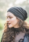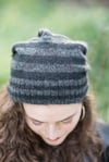 Monochrome stripes of Birch and Pebble give texture to this exquisitely soft, slouchy hat. Three lines of decrease make a geometric-looking crown, while short rows subtly enhance the hat’s slouch. Pattern includes illustrated tutorials for German Short Rows and a tubular cast on. Slouch 3 is worked in the round from brim to crown using knit, purl, and k2tog/ssk decreases. The pattern instructions are written only.