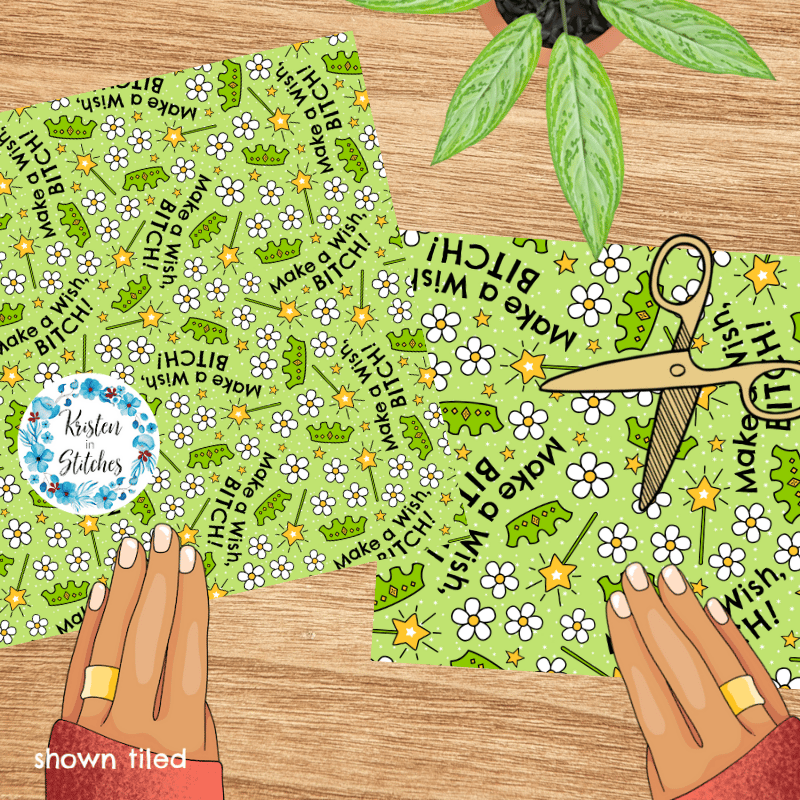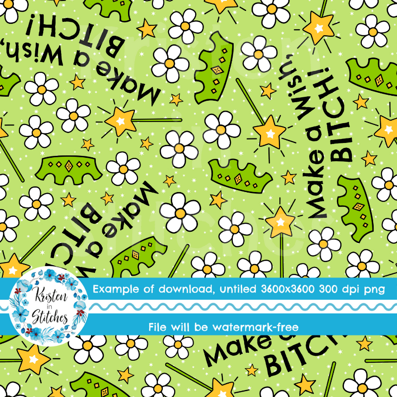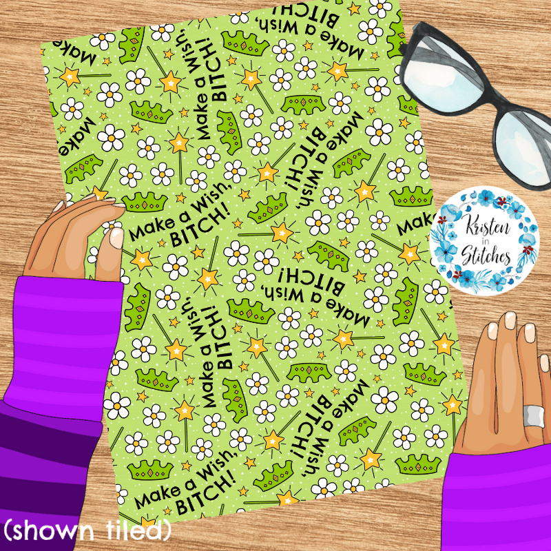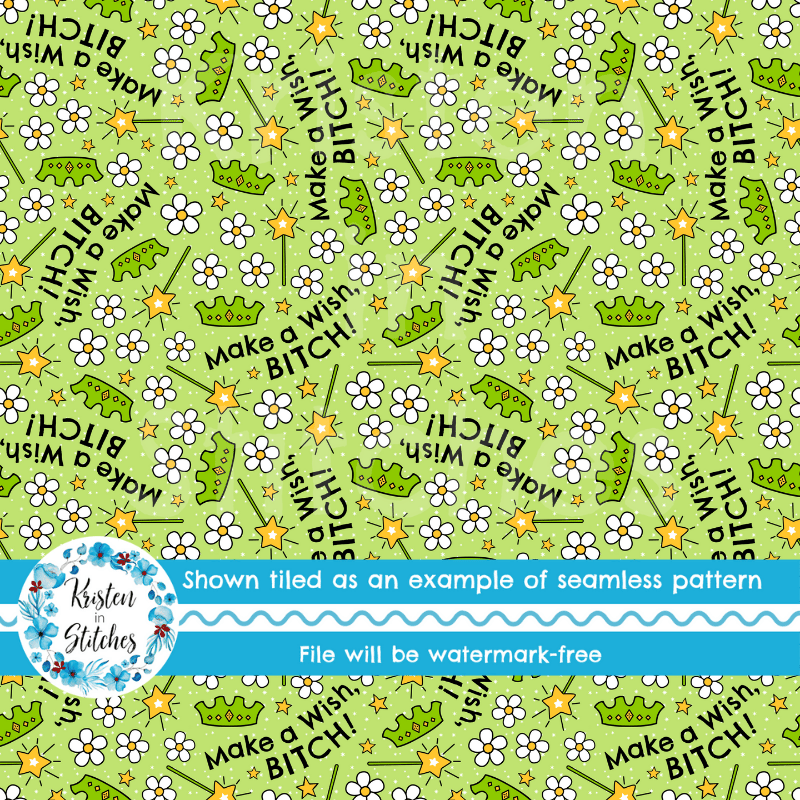 Make a Wish, Bitch! Sarcastic Sweary Seamless Pattern, Fairy Princess Wands Crowns