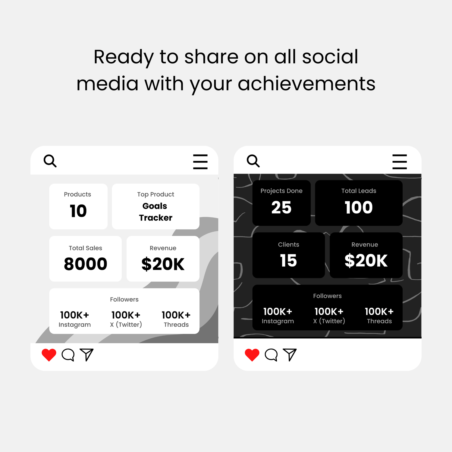 Various design packs are fully customizable designs & ready to share on all social media with your achievements.