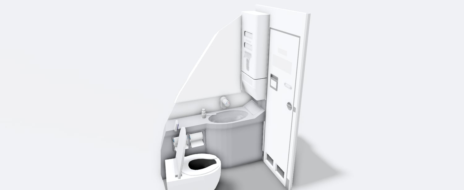This high-quality, realistic aircraft lavatory model is designed to closely resemble real-life restroom facilities onboard an aircraft. Fully customizable to suit any airline or aircraft specifications.